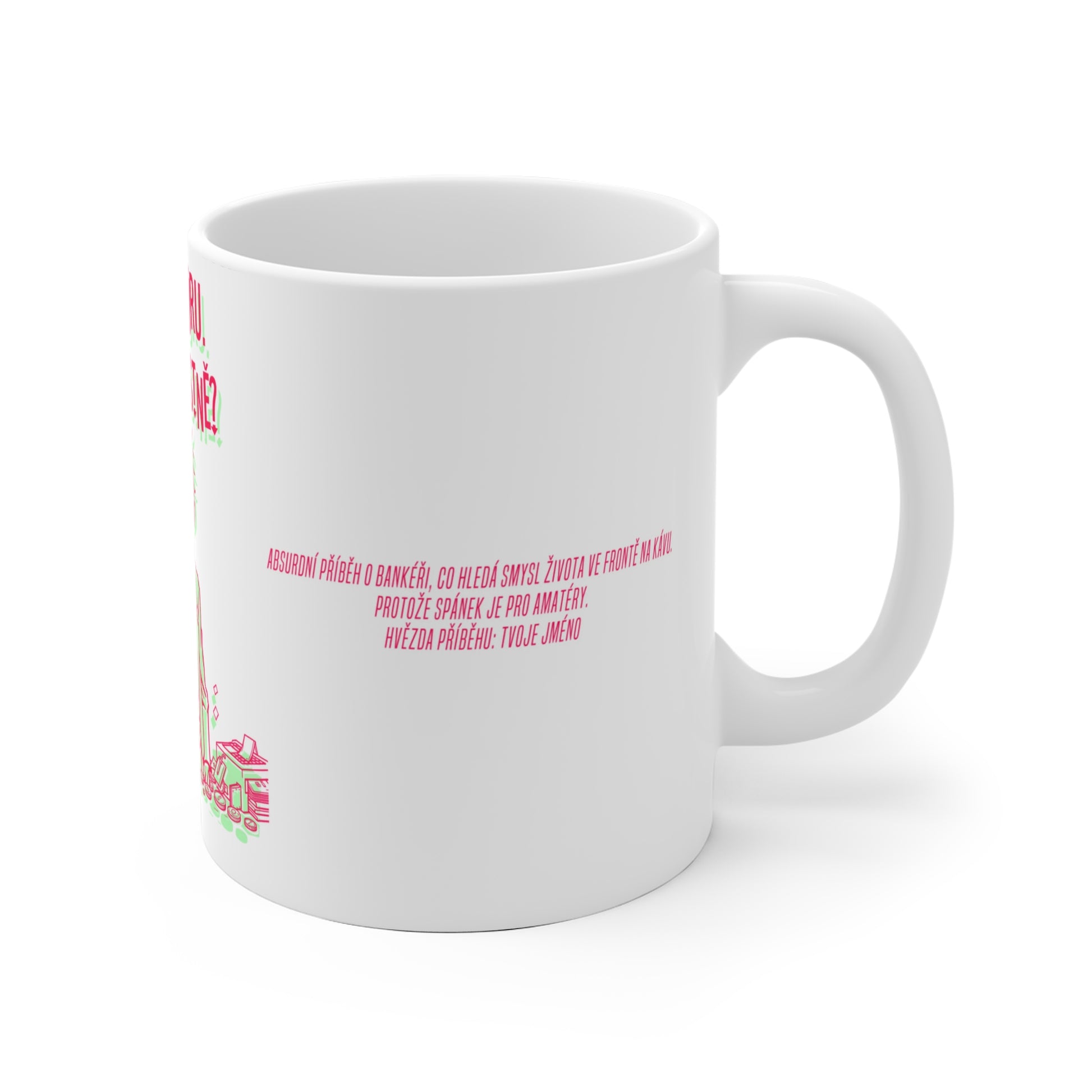 Pro všechny ranní bojovníky s kruhy pod očima a kontem plným iluzí. Tento hrneček ti připomene, že smysl života opravdu čeká... ve frontě na kávu. A co spánek? Ten nechme amatérům. Ošklivá pravda na dně kávy, zatímco sníš o zisku a ztrátách. Ideální pro ty, kteří vědí, že absurdní příběh může být i ten jejich. Perfektní hrnek pro bankéře, který hledá jedinečný dárek pro bankéře.