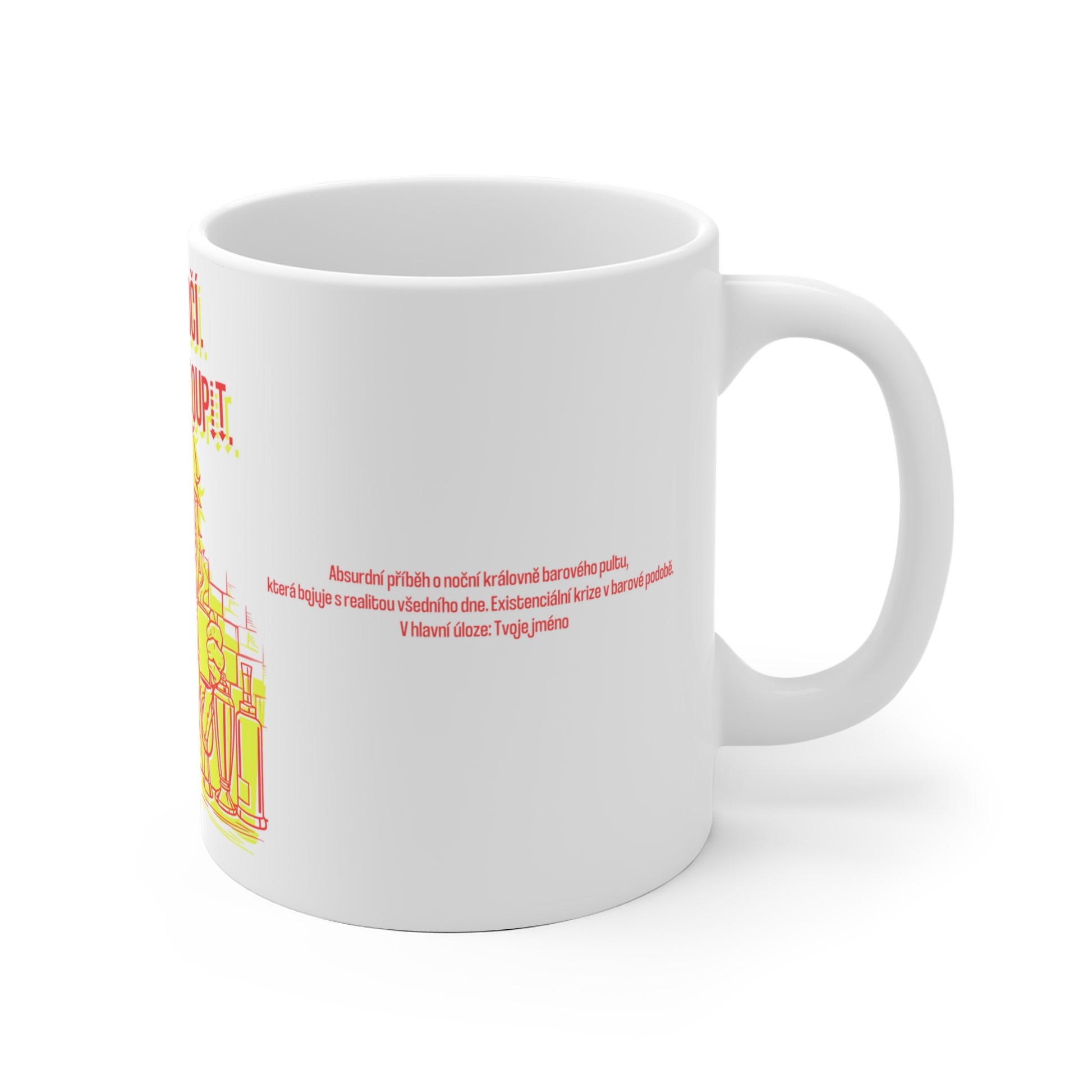 Nemáš dost kofeinu, abys vydržela poslouchat další pokus o levný flirt za barem? Nejseš sama! Tento hrnek ti připomene tvoji noční směnu a existenciální krize a zároveň ti dá aspoň kousek naděje, že někde na konci směny čeká světlo. Popíjej, jako když se noční královna barového pultu pokouší zvládnout den. Dokonalý hrnek pro barmanku, která hledá trochu povzbuzení a dobrou náladu během náročného pracovního dne.