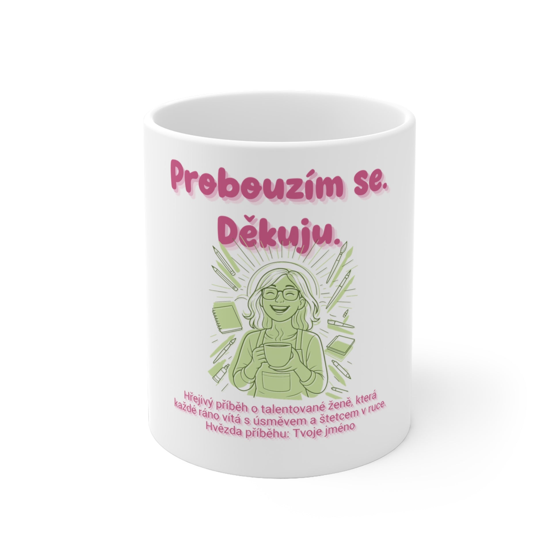 Každé ráno je jako kouzlo z plátna. Ilustrátorka se probouzí, světlo dopadá na její pracovní stůl, kde klidně leží štětec čekající na první tah dne. Její úsměv naplní místnost a den se začne malovat. Přidej se k tomuto příběhu a napiš své jméno do titulních pokřiků nového rána - Tvůj příběh, Tvé plátno. Tento hrnek pro ilustrátorku je ideální dárek pro každou kreativní duši.