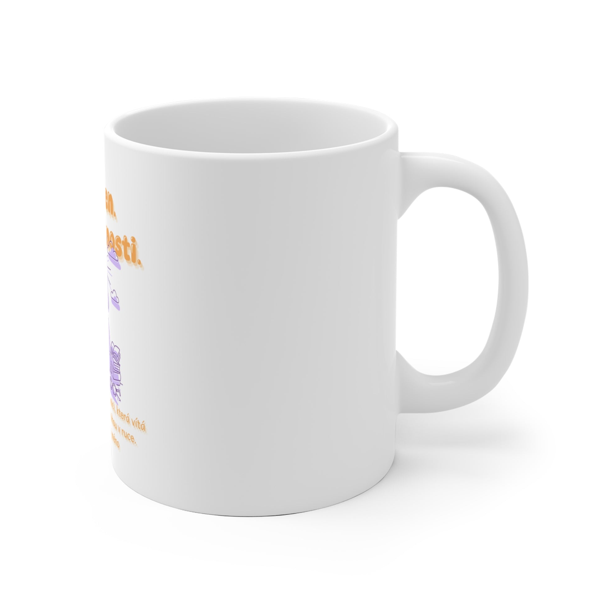 Materiál: Bílá keramika, 11 oz (0,33 l) a 15 oz (0,44 l), Zaoblené rohy, Ucho ve tvaru C