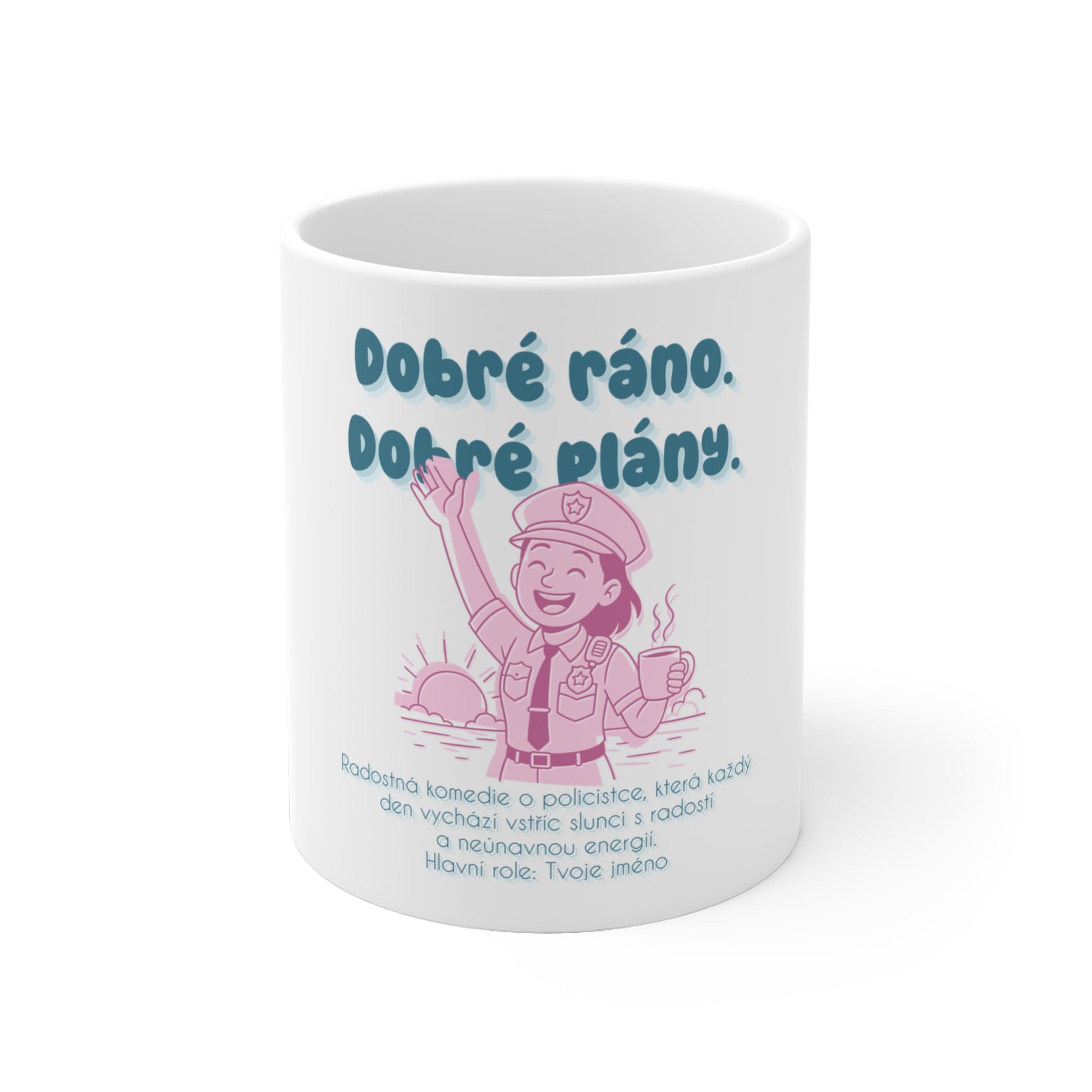 Každé ráno, když se slunce probouzí, začíná inspirativní příběh policistky, která s úsměvem vítá nový den. S každou kapkou kávy roste její energie, kterou potřebuje, aby chránila a pomáhala ostatním. Dopřej si svou premiéru každého úsvitu a představ si, že jsi hrdinkou tohoto nevšedního příběhu. Obsazení: Tvůj příběh začíná. Cítíš se být hlavní rolí? Tento hrnek je ideálním dárkem pro policistku, která chce začít den s odvahou a odhodláním.