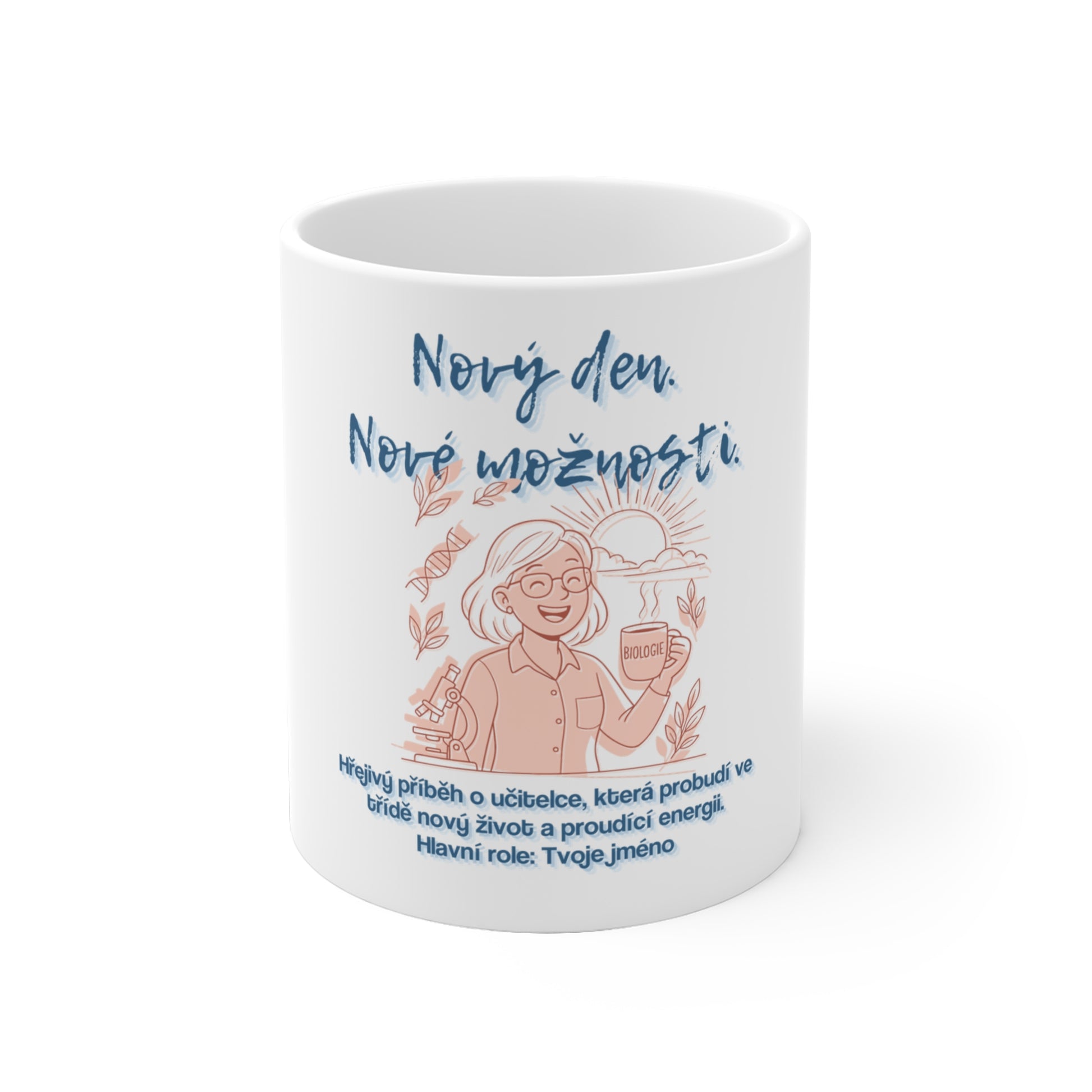 Jemný paprsek slunce prozáří okno třídy a v tom okamžiku tvé srdce zaplane nadšením. Probouzíš nový den plný objevů a dobrodružství a všechna tvá slova, která třída slyší, vdechují žákům nový život. Dopřej si chvíle, kdy hraješ hlavní roli. V titulku tohoto filmu můžeš přepsat jméno obsazení a přivítat paprsky každého úsvitu. Tento hrnek pro učitelku biologie je dokonalý dárek, který připomene vaši vášeň pro vzdělávání každý den.