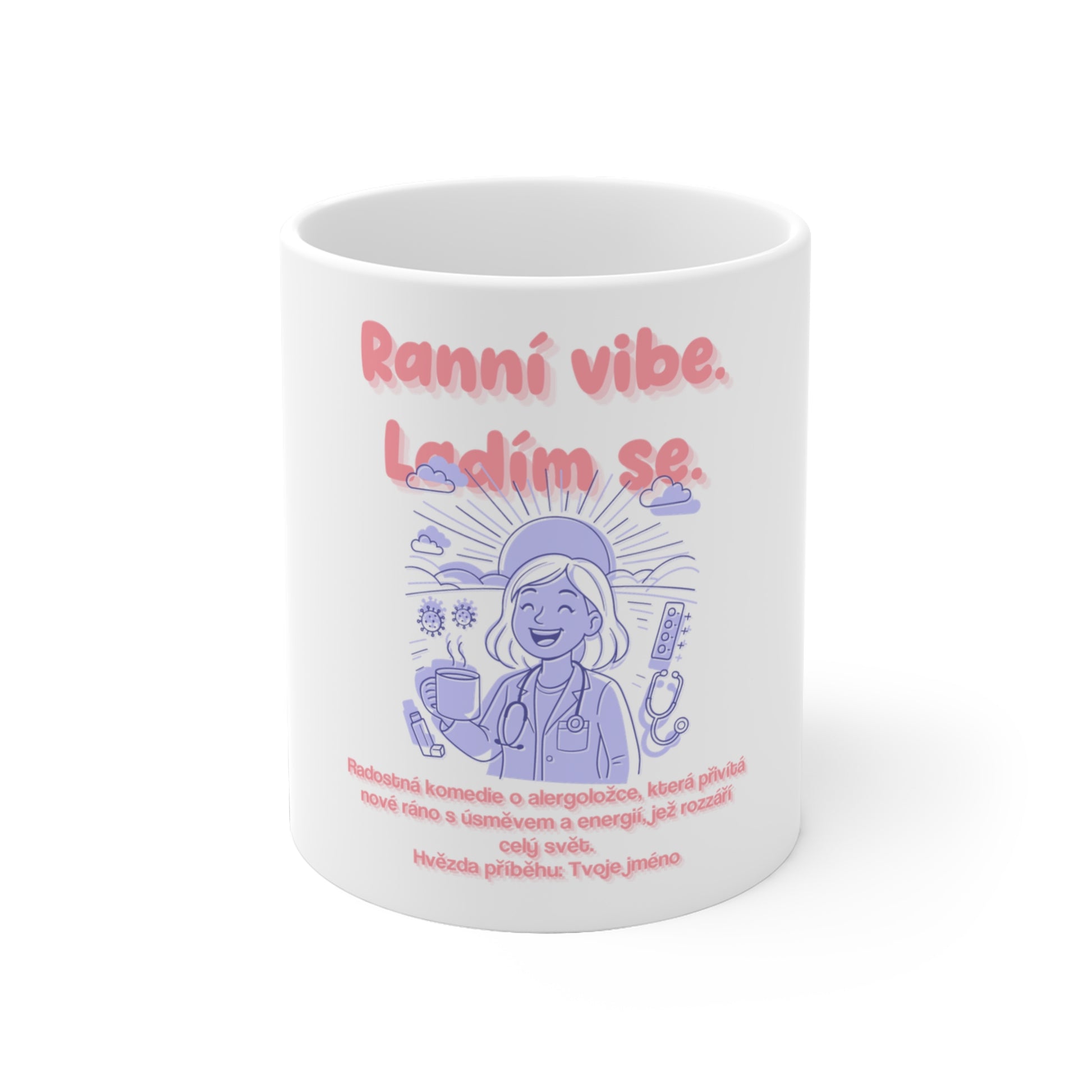 Když den pomalu začíná, ty už držíš svůj hrdinský hrneček a vítáš ho se zářivým úsměvem. Jsi alergoložka, která ve svém ranním rituálu rozjasňuje den a přináší do něj novou energii, jako v jednom z filmových příběhů. Stáváš se hlavní postavou. Vlož své jméno do scénáře a oživ každé "dobré ráno" vlastní premiérou. Tento hrneček je ideálním dárkem pro každou alergoložku, která chce začít den stylově.