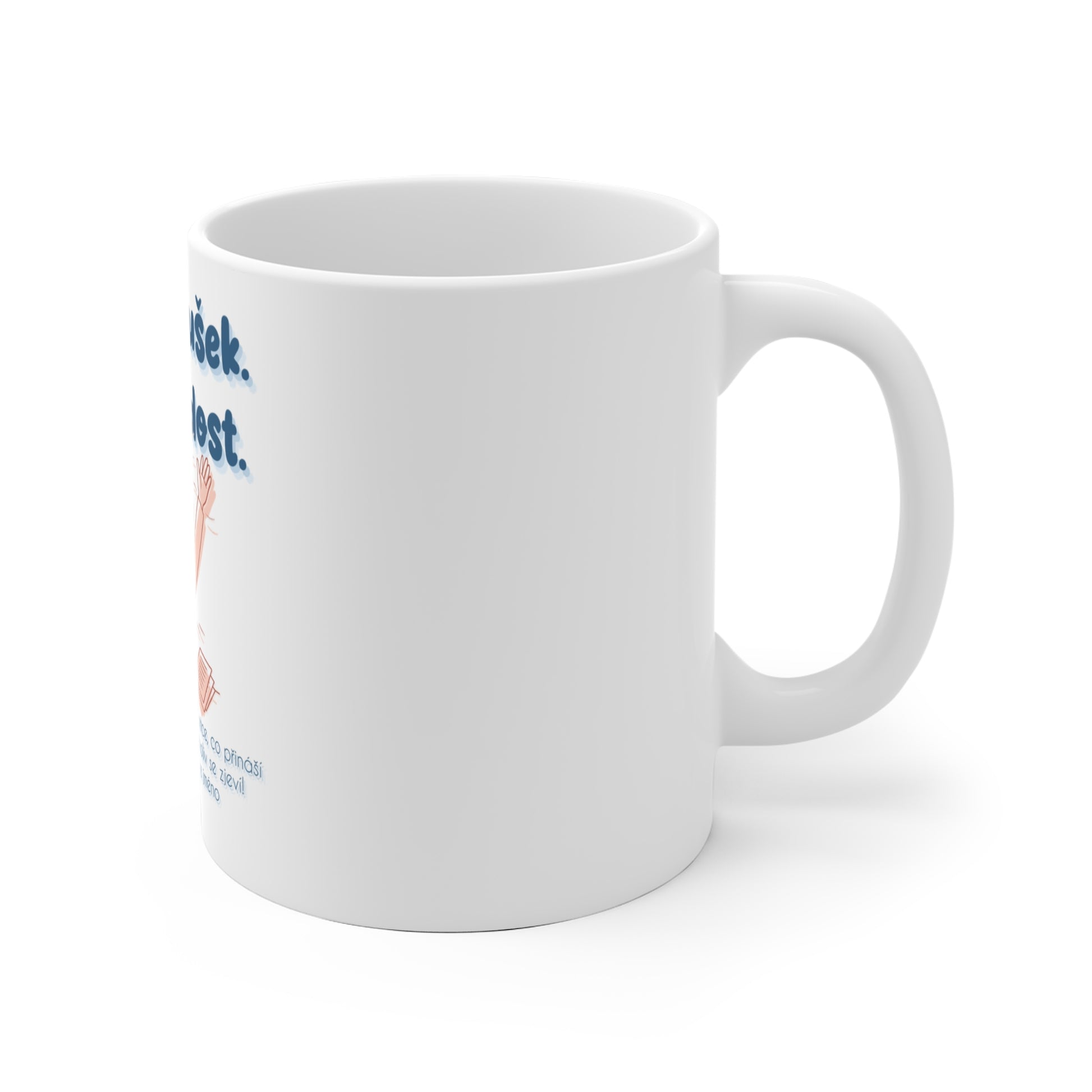 Materiál: Bílá keramika, 11 oz (0,33 l) a 15 oz (0,44 l), Zaoblené rohy, Ucho ve tvaru C