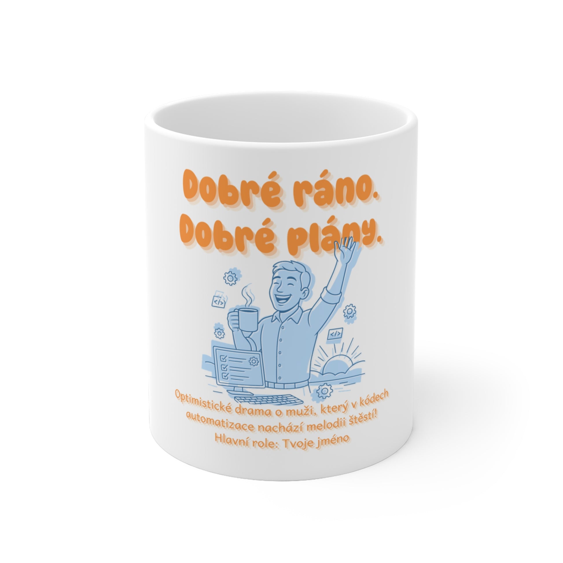 Ráno probuzené jemným světlem, hrneček s párou a tester, co zvukem kláves píše scénář digitalizovaného světa. Tak začíná optimistické drama, kde harmonie kódu a šálek kávy otevírají dveře novým možnostem. Vstup na scénu jako hlavní postava a najdi svou melodii štěstí s každým douškem. Teď je čas doplnit se k obsazení: 'Optimistické drama, vítej, ... (tvé jméno)'. Tento hrnek je ideálním dárkem pro automatizačního testera, který chce začít svůj den s trochou inspirace a pohody.