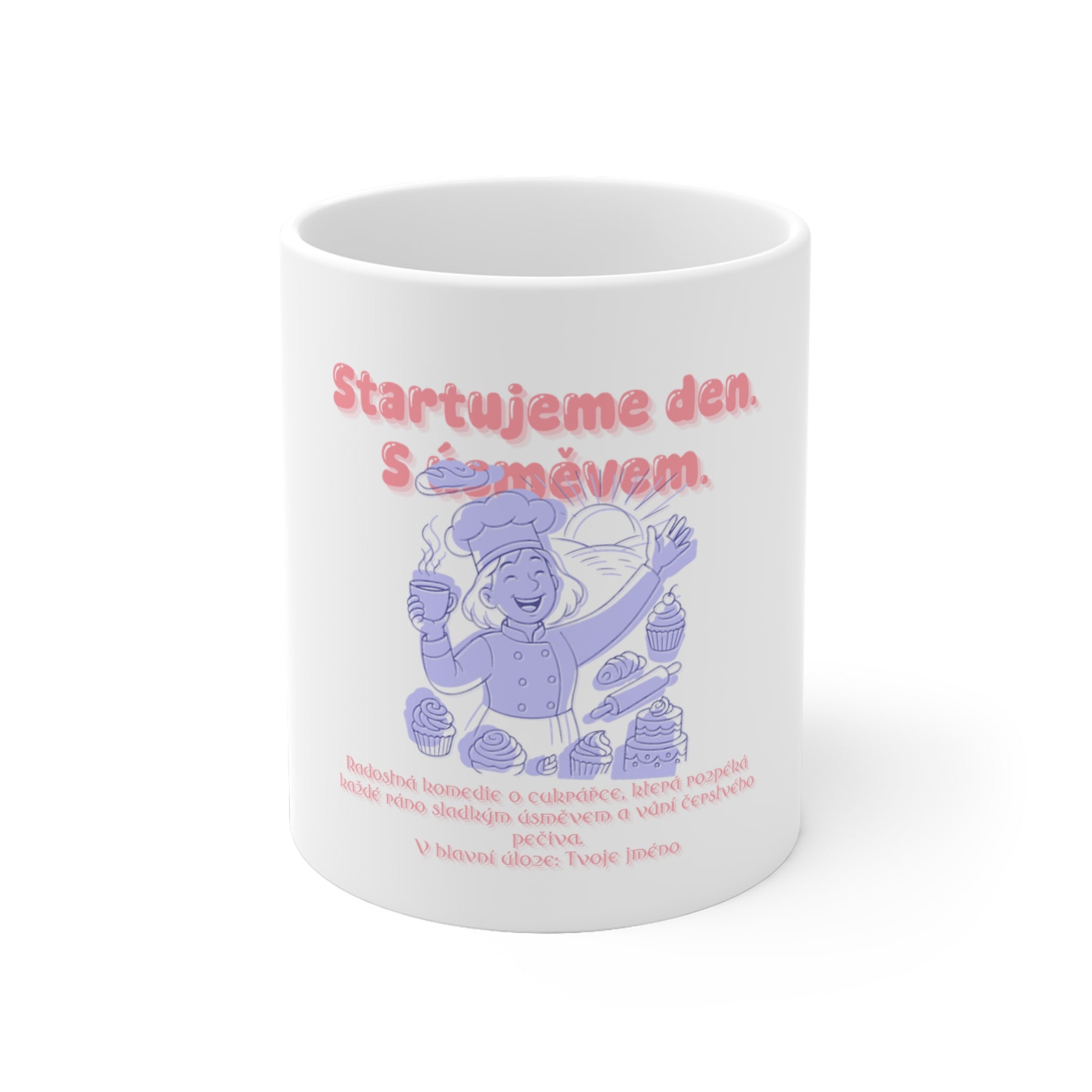 Jemné světlo proniká oknem kuchyně. Ty, jako hlavní hvězda svého malého filmu, mícháš těsto a tvůj sladký úsměv naplňuje místnost. Každý den je nový příběh, který začíná vůní čerstvě upečeného pečiva. Představ si svůj filmový snímek a přijmi roli cukrářky. Naplňuj svůj svět sladkostí a úsměvem – to je tvé hlavní představení. Tento hrneček pro cukrářku je ideální dárek, který ti dodá špetku inspirace pro každé pečení.