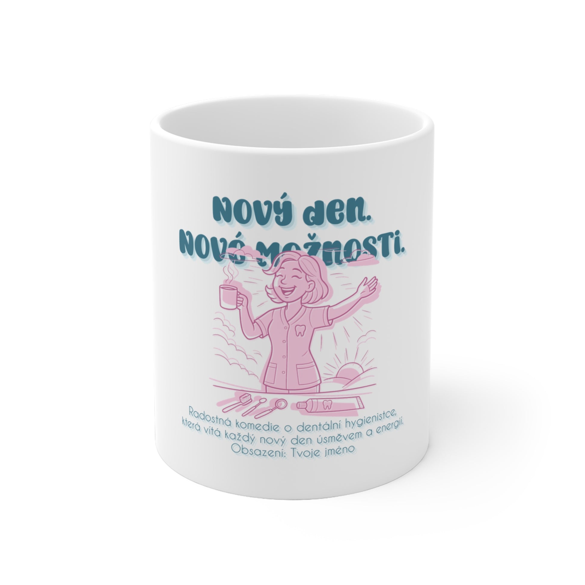 Kamera zabírá tvoje šikovné ruce, které se chystají na začátek nového dne plného svěžích úsměvů. S každým tvým pohybem roste naděje a radost z blízkého setkání s pacienty, jejichž den rozzáříš. Staň se hvězdou tohoto příjemného setkání. Vlož své jméno do scénáře a zažívej každý okamžik plný úsměvů a pozitivní energie. Tento hrnek je ideálním dárkem pro každou dentální hygienistku, která chce začít svůj den s úsměvem.