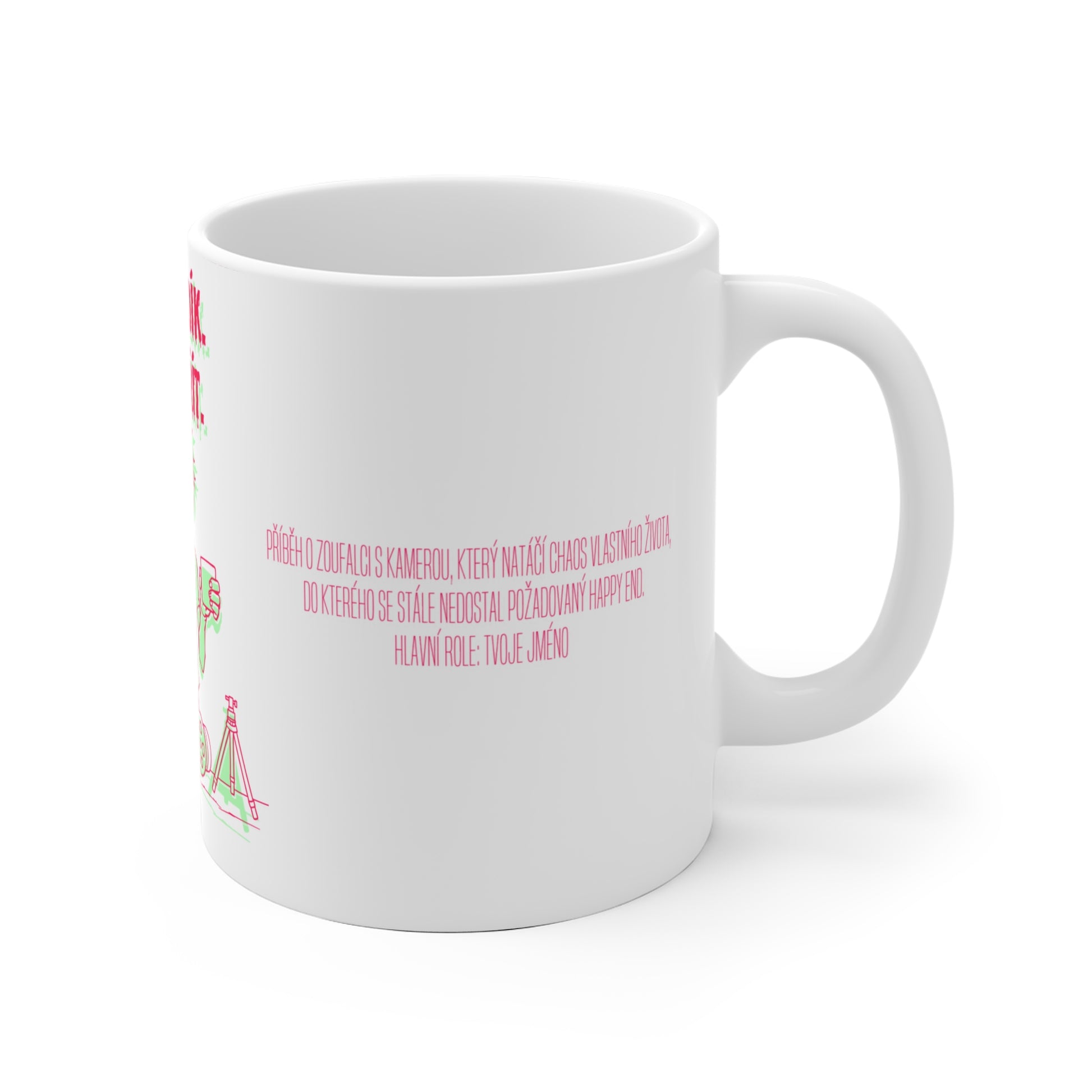 Pokud tě už omrzelo hledat smysl ve scénáři vlastního života, máme řešení! Hrnek, který dokonale vystihuje, co ti každý nový den přináší – další neúspěšný pokus o lepší scénář. Sarkastický společník pro ty, kteří místo Hollywoodu skončili ve vesmíru černého humoru. Naplň si ho jako zázračný pohár a doufej, že příští den bude alespoň v rozlišení 4K. Ideální hrneček pro každého kameramana a perfektní dárek pro kameramana ve vašem životě.