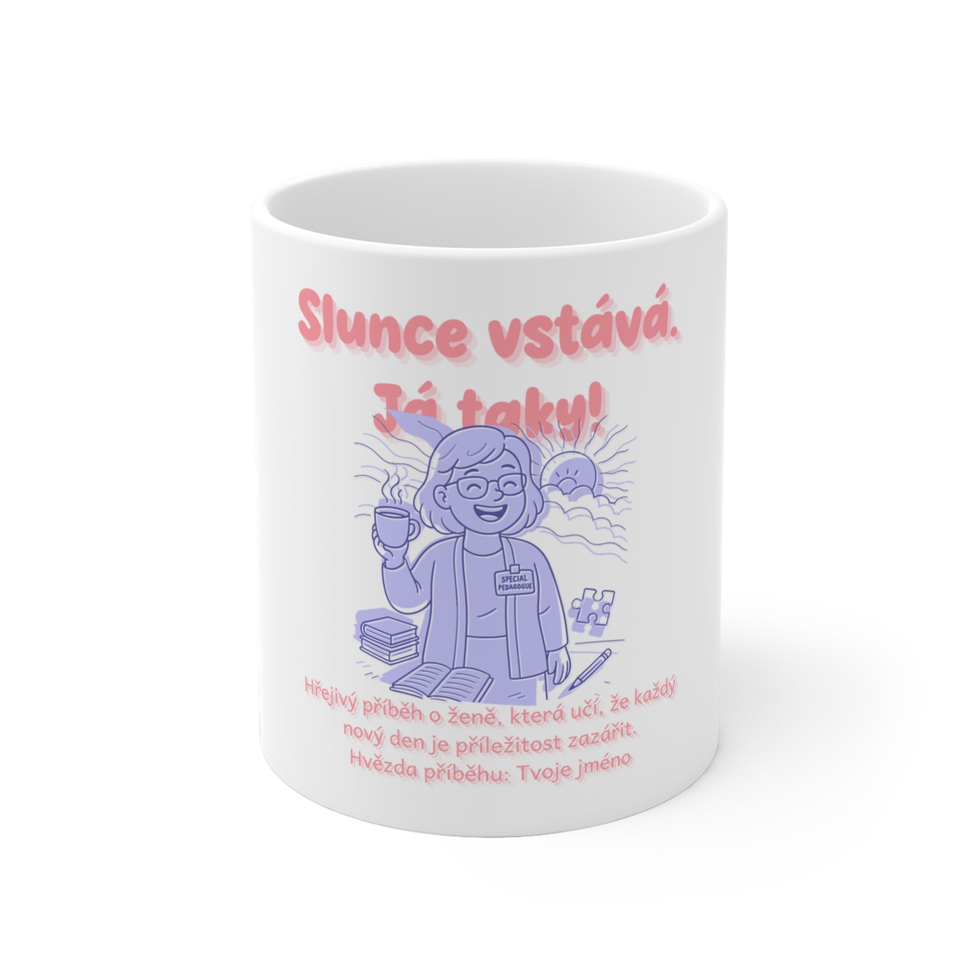 Každý nový den je jako prázdné plátno, na které sluneční paprsky jemně malují tvou životní symfonii. Jsi hlavní postavou, obklopená láskou a sílou, abys povzbudila každého, koho potkáš. Tvé jméno se stává hrdinou příběhu: "Hlavní role hraje...". Tento hrneček je ideálním dárkem pro speciální pedagožku, která si zaslouží speciální pozornost.