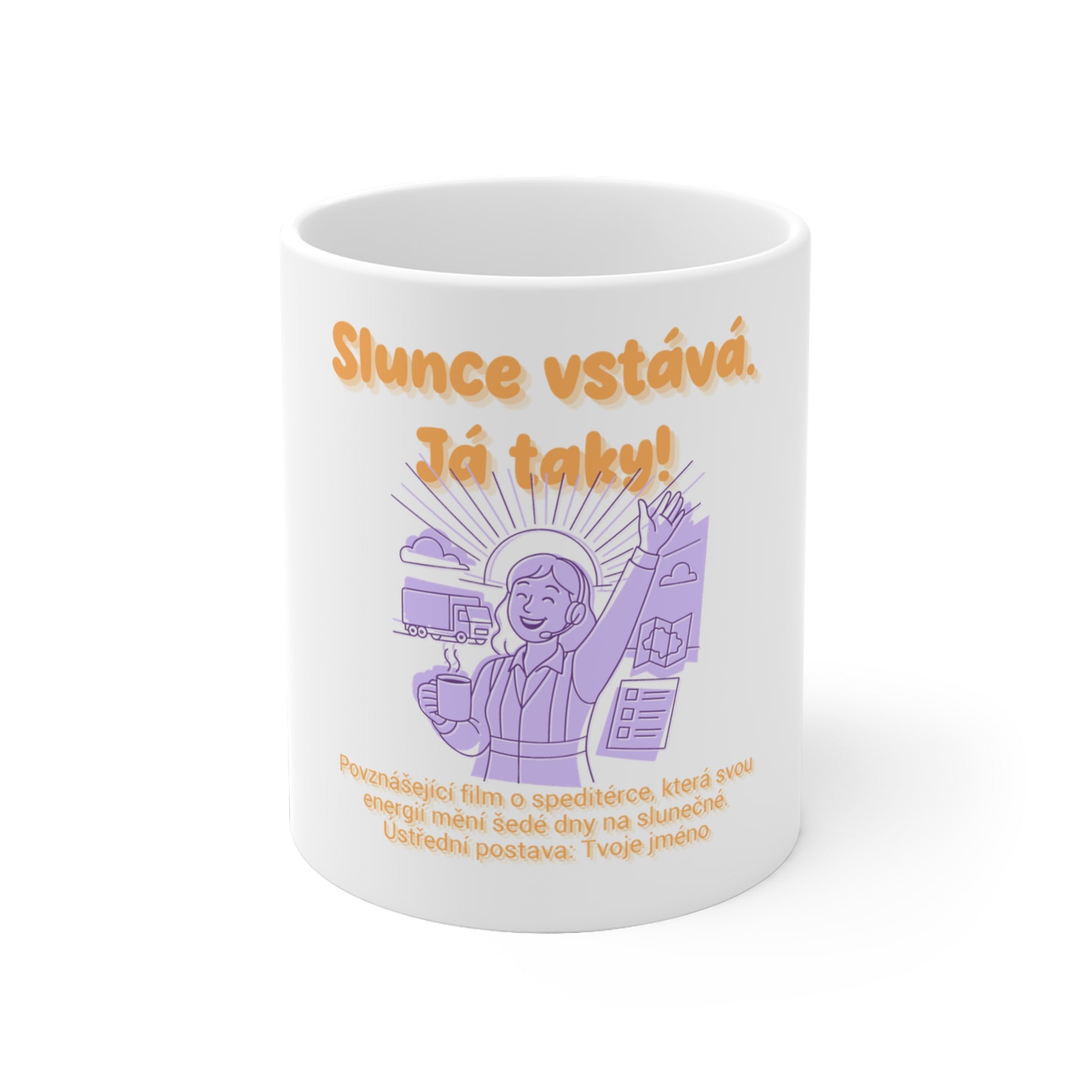 Dodej svému ránu hvězdný šmrnc a do titulku si doplň jméno své filmové postavy: "Povznášející film o speditérce, která promění obyčejný den v něco zvláštního." Tento hrneček pro speditérku je dokonalým dárkem pro každou ženu, která hledá inspiraci a radost v každodenním životě.