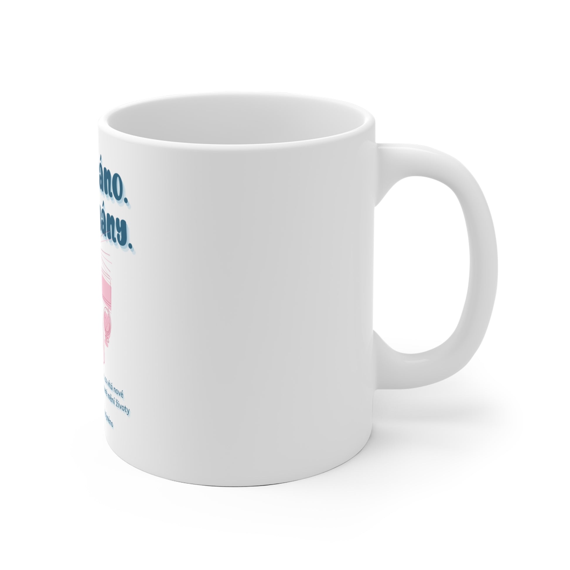 Materiál: Bílá keramika, 11 oz (0,33 l) a 15 oz (0,44 l), Zaoblené rohy, Ucho ve tvaru C