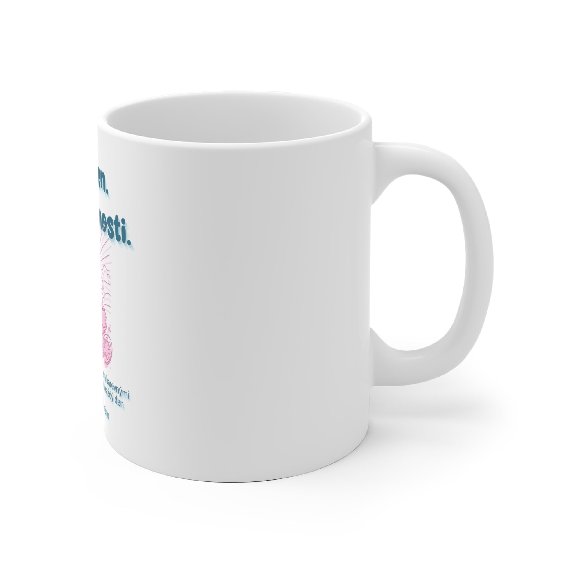 Materiál: Bílá keramika, 11 oz (0,33 l) a 15 oz (0,44 l), Zaoblené rohy, Ucho ve tvaru C