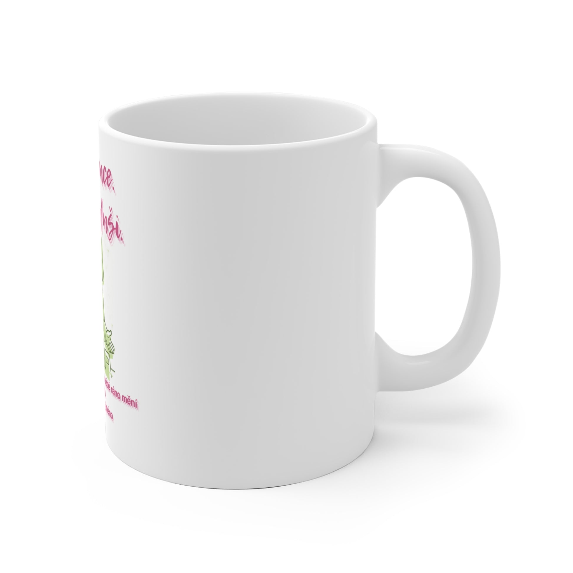 Materiál: Bílá keramika, 11 oz (0,33 l) a 15 oz (0,44 l), Zaoblené rohy, Ucho ve tvaru C