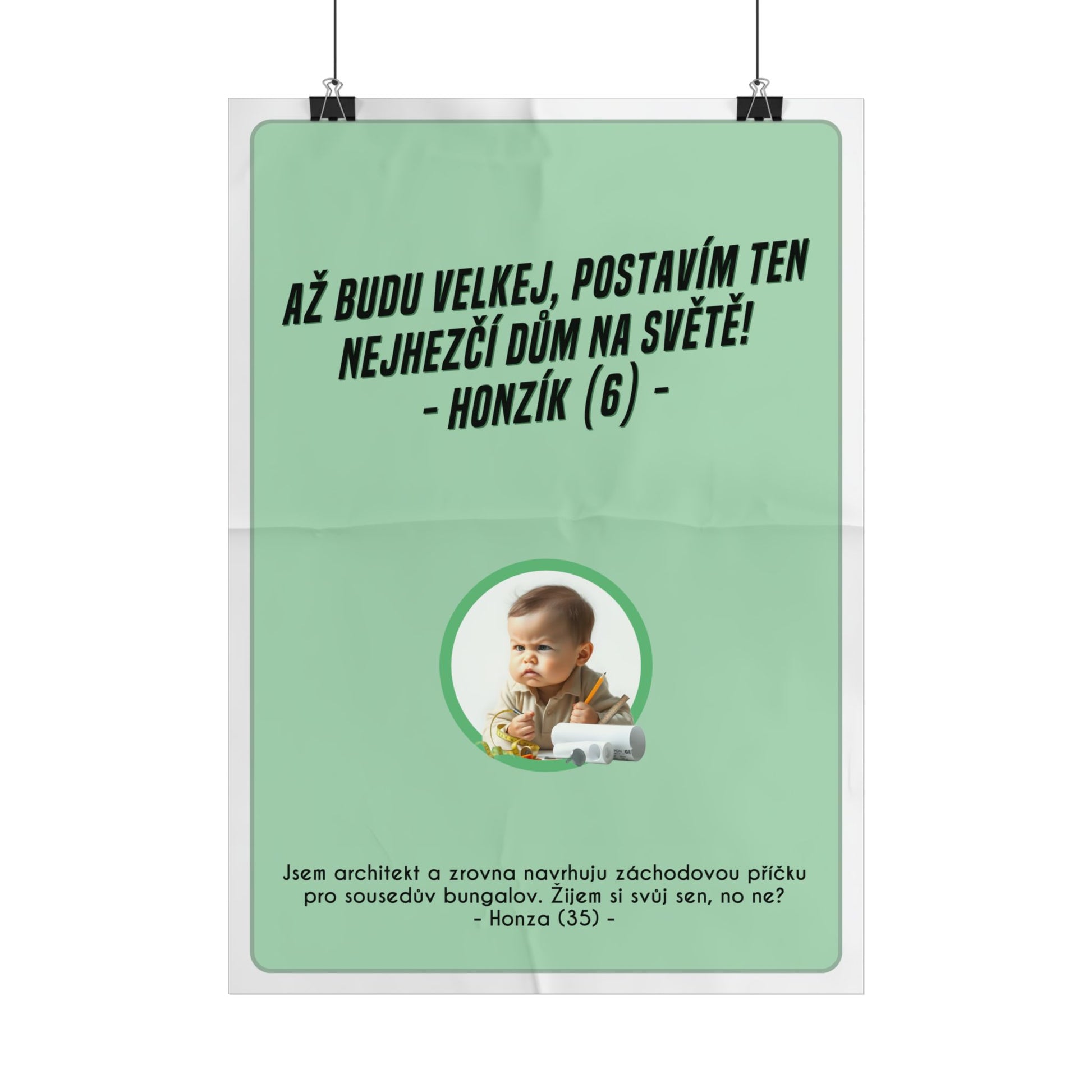 Sarkastická óda na dětské sny a tvrdou realitu dospělosti. Tento plakát perfektně vystihuje, co znamená být architektem. V dětství sníte o navrhování nejkrásnějšího domu a nakonec se ocitnete při návrhu záchodové příčky. Perfektní doplněk pro ty, kteří si udržují černý humor i ve světě cihel a betonu. Povznes se nad každodenní slasti a strasti života v architektuře s lehkým úsměvem a hřejivým pocitem ironie. Tento plakát A3 je ideální dárek pro architekta, který ocení vtipnou připomínku svojí profese.