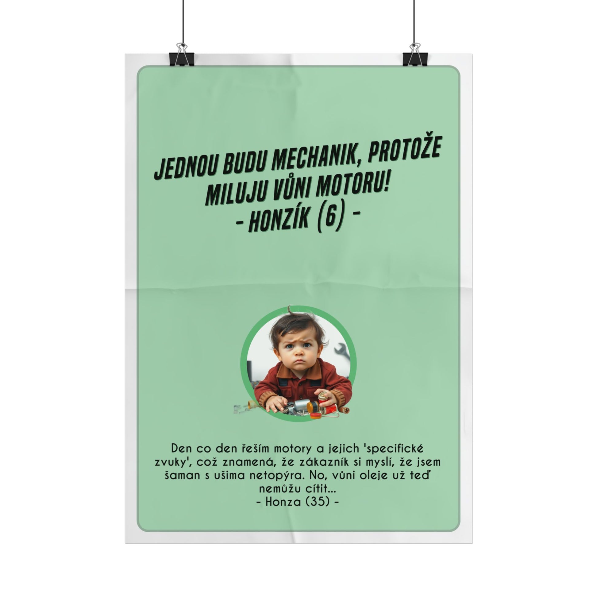 Snil jsi o tom, že jednou budeš největším automechanikem světa? Toužil jsi cítit vůni motorů a stát se tím, kdo dává autům duši? No, realita zašpiněná olejem tě přivítala jinak! Každý den řešíš "vynikající" zvukové efekty a zákazníky, kteří věří, že jsi všemocný. Drž se, mechaniku! S tímto plakátem nezapomeneš, kam až sahají tvé sny. Ideální dárek pro automechanika, který ocení stylový plakát A3 na zkrášlení své dílny.