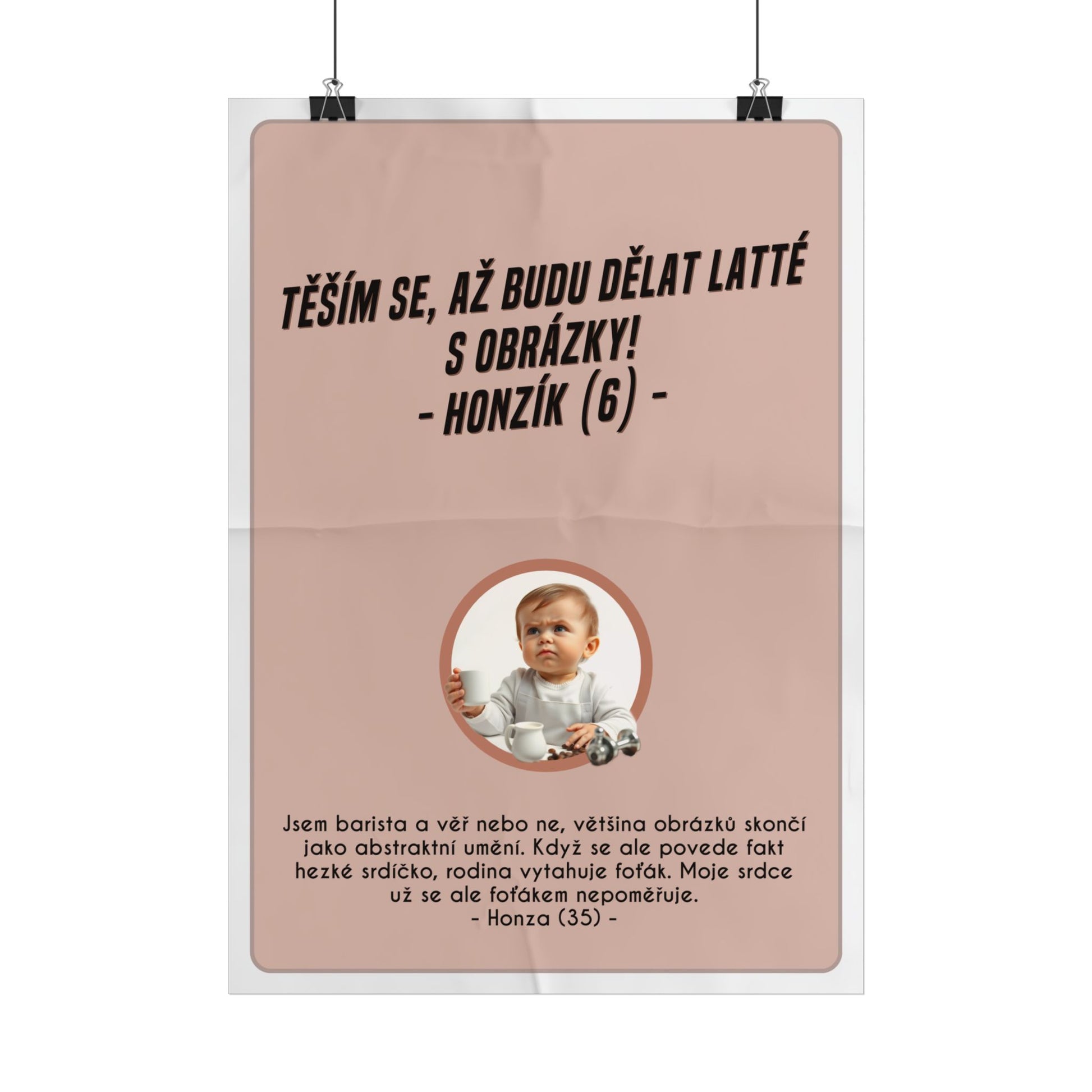 Pamatuješ si ty sladké představy o latte artu, které sis osvojil na Instagramu? No, a teď jsi tady, pěnivý génius, jehož většina výtvorů vypadá jako moderní chaotické umění. Ale když se ti povede to dokonalé srdíčko, rodina se nadšeně vrhá pro fotoaparát. Neboj, tvoje opravdové mistrovství nepotřebuje potvrzení snímkem, to už jsi dávno přerostl! Tento plakát A3, navržený speciálně pro baristy, je ideálním dárkem pro každého milovníka kávy, který chce vnést trochu umění do svého pracovního prostoru.