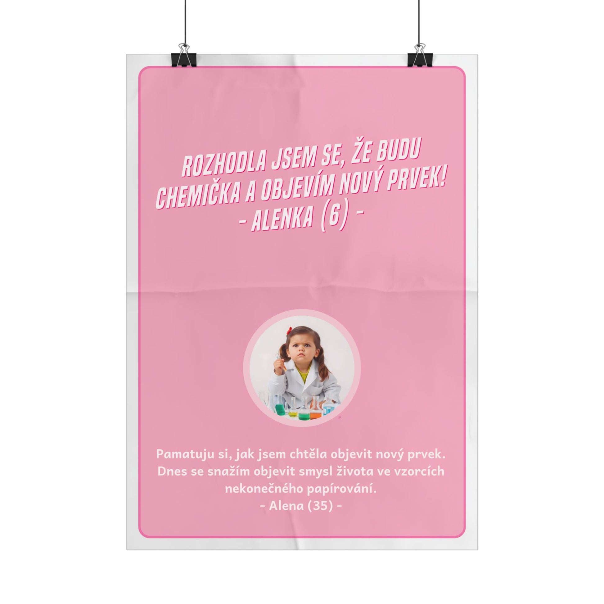 Vydej se na nostalgickou jízdu od snů plných objevů k realitě plné excelových tabulek a nekončící byrokracie. Tento plakát zachycuje vtipný kontrast mezi tím, co sis jako nadšená chemička slibovala, a šedou každodenností laboratoře plné papírování. Černý humor a trocha sarkasmu k tomu – tohle je skutečné kouzlo chemie života. Smích zaručen! Ideální dárek pro chemičky, tento plakát A3 skvěle doplní vaši sbírku chemického humoru.