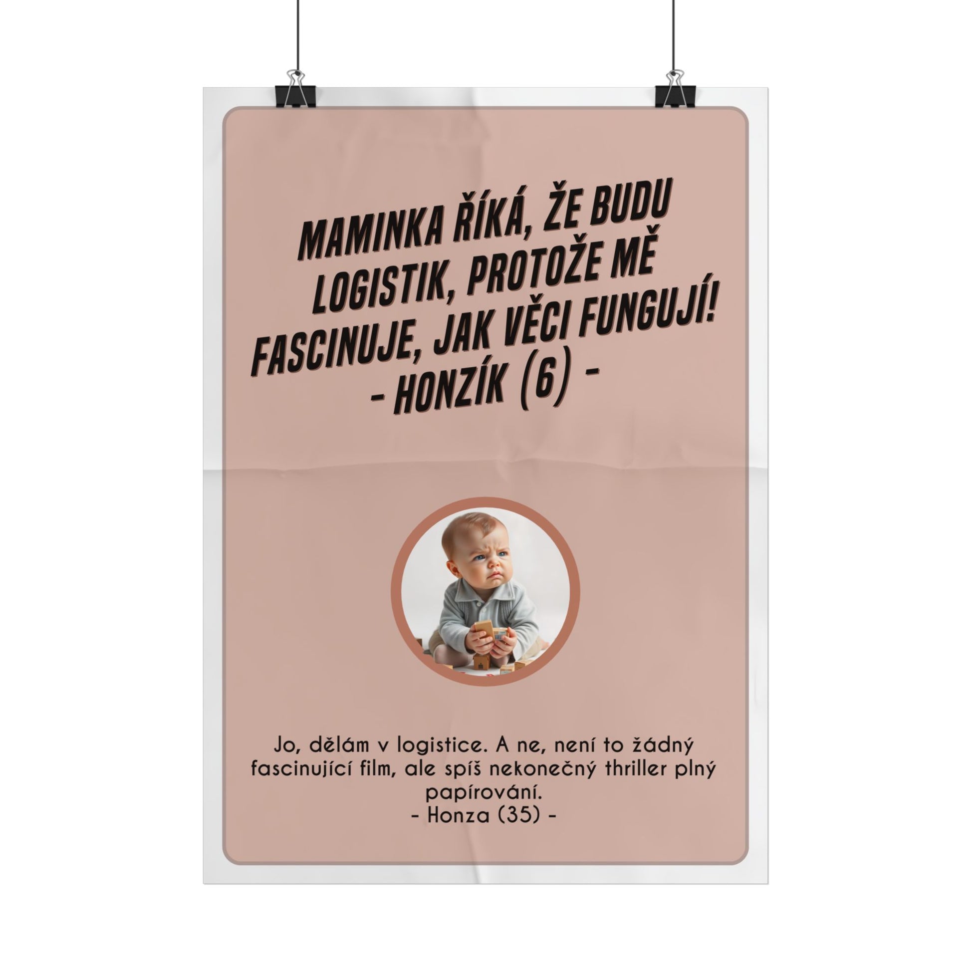 Pamatuješ, když jsi byl malý a myslel sis, že logistika je o tom, jak věci fungují? Teď to děláš a už víš, že je to spíš nekonečný koloběh papírování než nějaké cool dobrodružství. Na tomto plakátu si můžeš připomenout, že maminka možná měla mírně idealistický pohled. Ideální pro každého, kdo potřebuje trochu sarkastického povzbuzení. Perfektní plakát A3 pro každého logistiky, který hledá dárek pro kolegu z oboru.