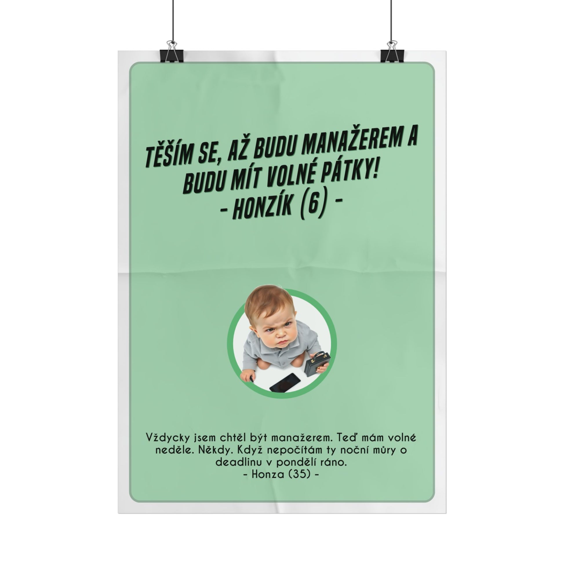S takovým plakátem si můžeš připomenout své iluze o manažerském ráji. Realita tě ale rychle probudí! Užívej si myšlenku volných pátků, zatímco ve skutečnosti máš jen občas volnou neděli. Skvělý dárek pro všechny manažery s černým humorem, kteří už dávno pochopili, že idylická představa o volném čase byl jeden velký klam. Konec snění a zpátky do reality. Tento plakát A3 je perfektní dárek pro manažera firmy, který ocení ironii svého povolání.