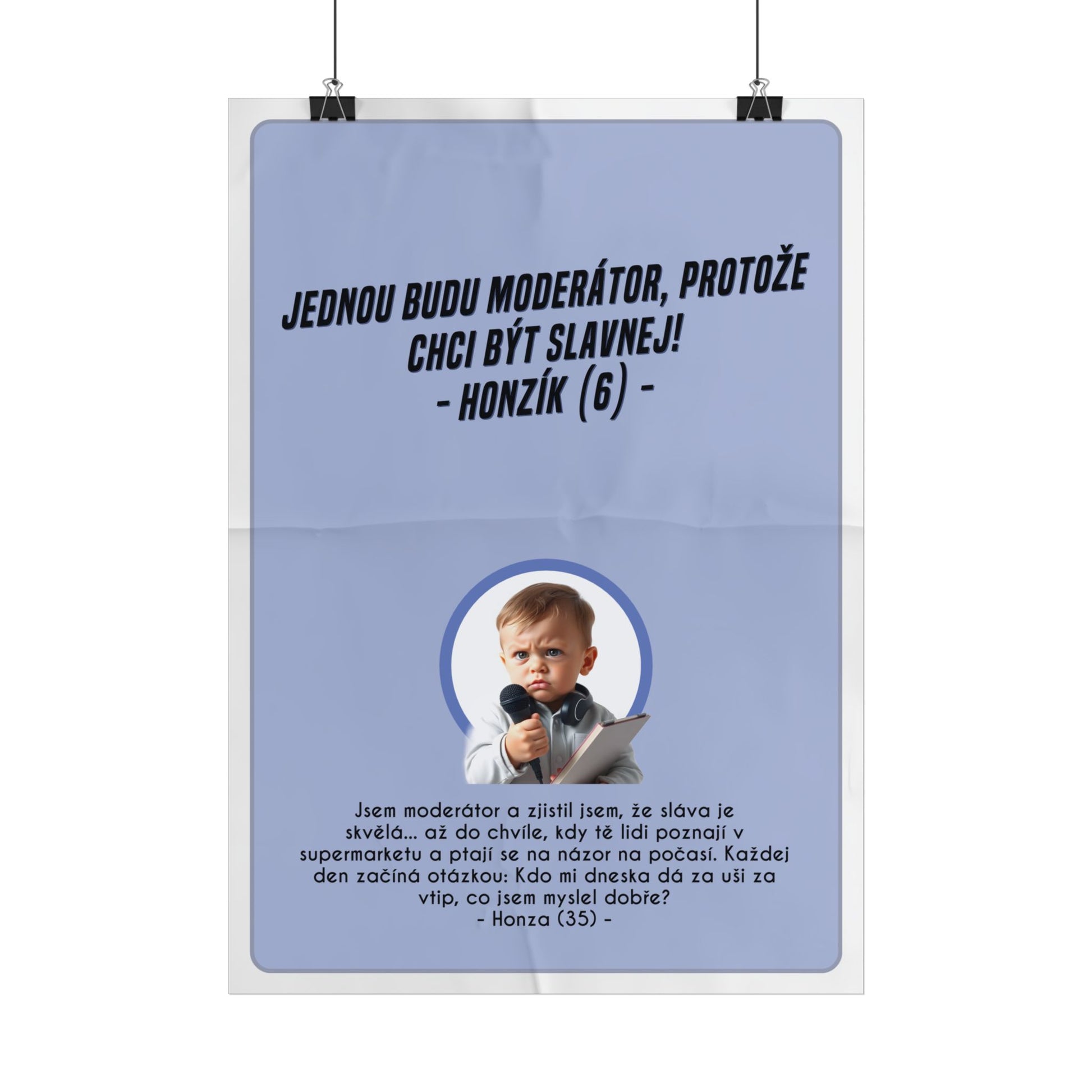 Objev, jak vypadá sláva z druhé strany kamery. Když si užíváte známou tvář, ale stále musíte odpovídat na dotazy o počasí. Tento veselý plakát ukazuje svět moderátorů, kde nejlépe funguje sarkasmus a špetka ironie. Ideální pro všechny, kteří potřebují snížit očekávání a užívat si každý zábavný okamžik profesního života! Perfektní plakát A3 pro moderátory hledající dárek, který vystihne jejich jedinečnou profesi.