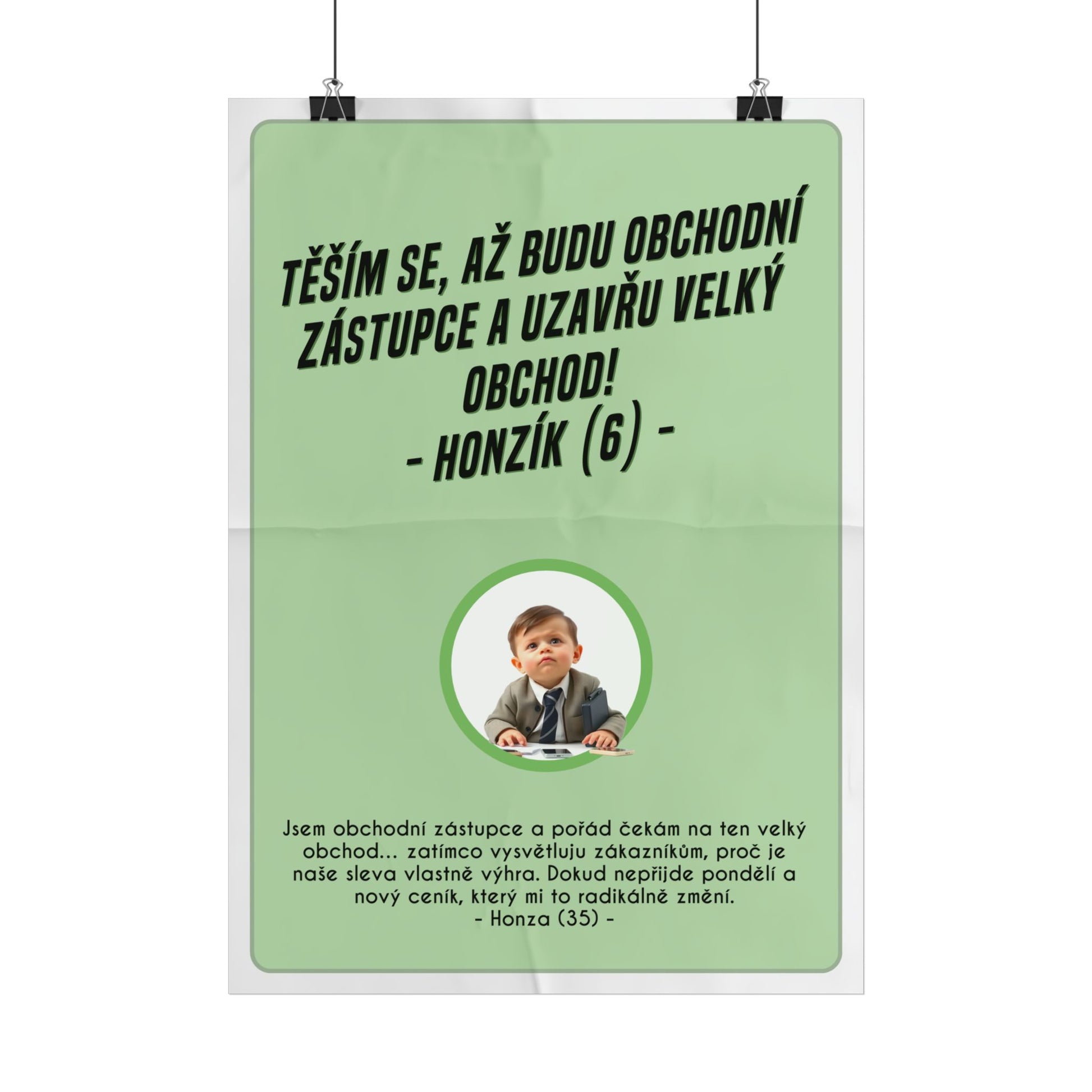 Myslíš si, že dny obchodního zástupce jsou plné honosných smluv a triumfálních večeří? Nádech! Ve skutečnosti to může být boj s novým ceníkem a nekonečné vysvětlování, proč je sleva záchranou lidstva! Tento plakát je sarkastickým pohledem na rozdíl mezi očekáváním a realitou. Sofistikovaně ti ukáže, že velké obchody možná přijdou, ale zatím tě v práci hýčká černý humor. Plakát A3 je ideálním doplňkem pro každého obchodního zástupce, nebo skvělým dárkem pro obchodního zástupce.