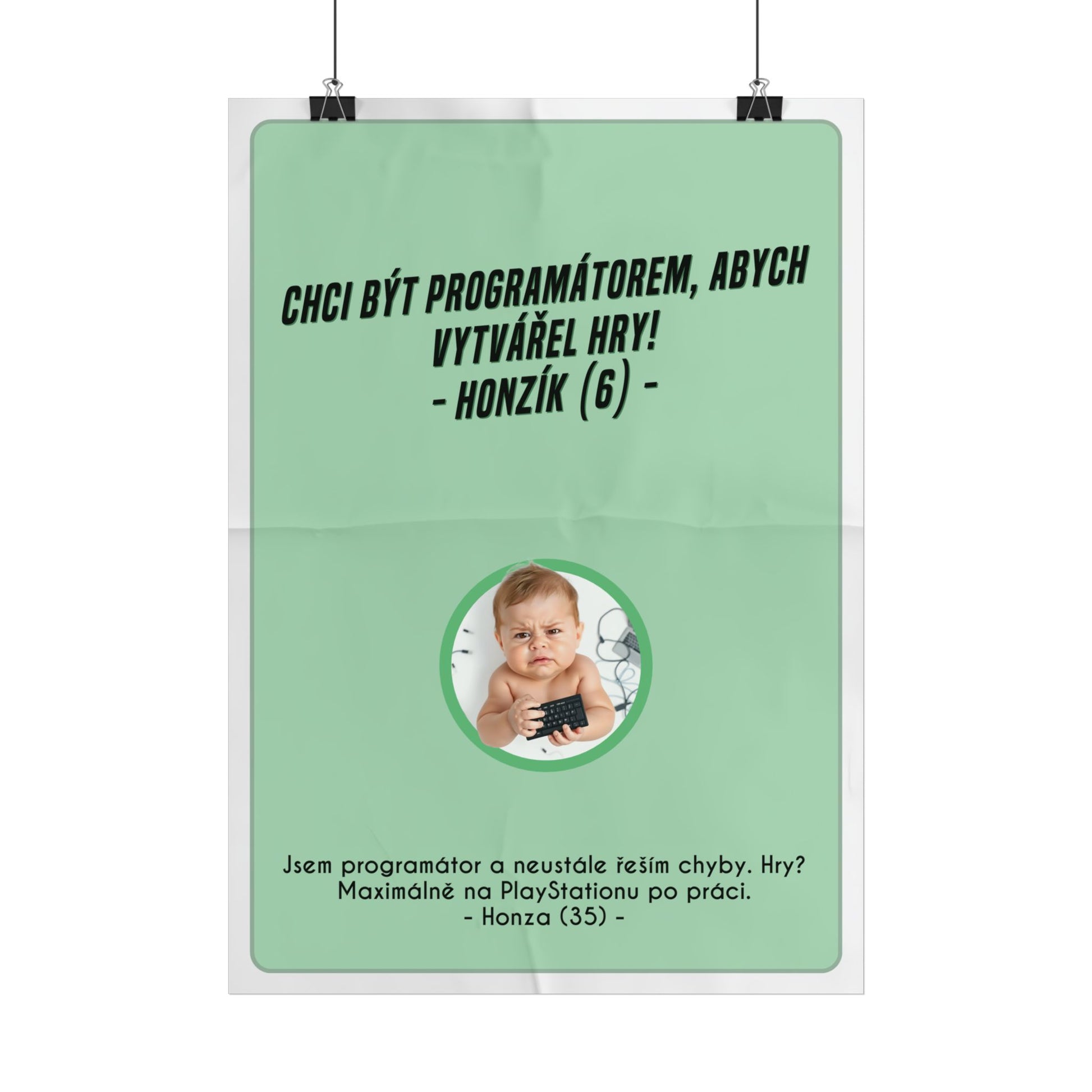 Vzpomínáš na chvíli, kdy jsi chtěl být programátorem, abys tvořil ty nejlepší hry? No, vítej v realitě, kamaráde! Místo her teď honíš bugy jako blázen. A Xbox? Ten uvidíš maximálně na obálce časopisu. Tento plakát ti pomůže připomenout, proč ses vydal tímto směrem, a zároveň ti poskytne lehký úsměv mezi debugováním. Tento plakát A3 je ideálním dárkem pro každého programátora, který ocení vtipný a inspirativní doplněk do své pracovny.