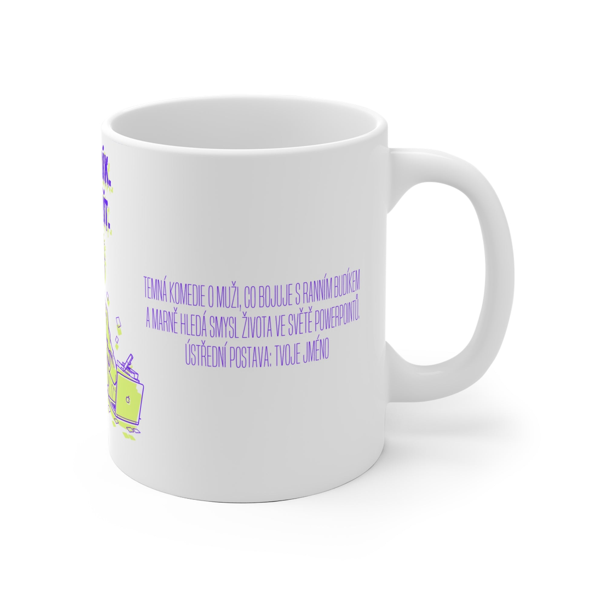Vstávat a jít zachraňovat svět? Ne, díky! S tímto hrnečkem se projektový manažer cítí jako hlavní postava temné komedie. Každodenní úkoly přetavené do PowerPointových prezentací a ranní káva jako jediná spása. Nasaď si černé brýle, popadni hrnek a vzepři se osudu, který ti servíruje prezentaci za prezentací. Tento hrnek je ideální dárek pro projektového manažera, který potřebuje kvalitní start do pracovního dne.