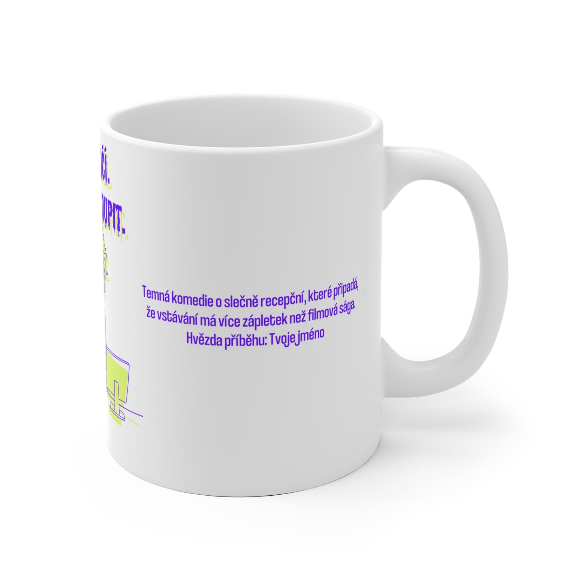 Na povrchu vypadá jako nevinný hrneček, ale uvnitř se skrývá temnota hodná života recepční. Připomeň si, že každé ráno je jen další kapitola v tvé osobní telenovele. S každým douškem kávy ti hrneček šeptá: "Vstaň, hlavní role nikdy nespí!" Měj odvahu žít svůj příběh plný nonsensu a jemně cynických epizod. Ideálním společníkem pro recepční je tento hrnek, který se může stát také skvělým dárkem.
