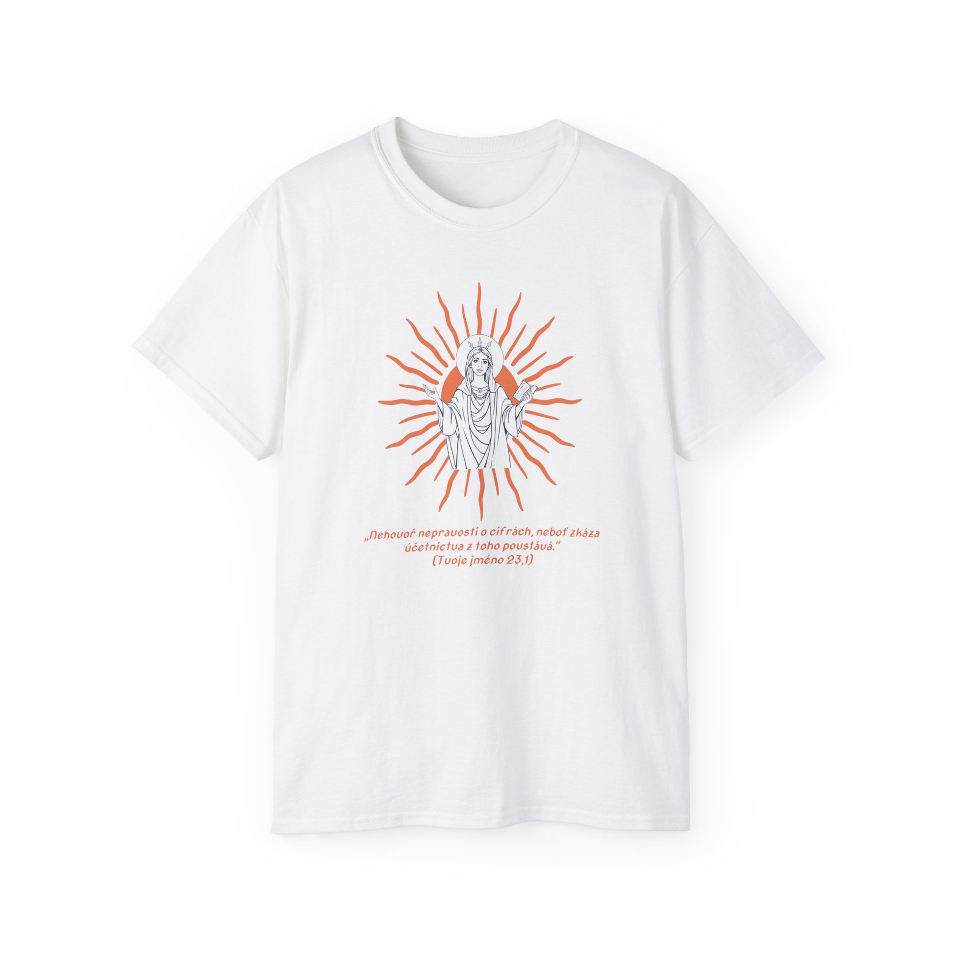 Když jdeš do práce a chceš být neodolatelná, obleč si toto tričko, které ti konkurence zcela určitě bude závidět! Stylizovaná svatá z holek z účtárny udělala opravdové legendy. Udělej z tohoto textu své heslo a staň se ženou, která si nenechá diktovat cifry, protože účty ví, že s tebou si není radno zahrávat. Světe, pozor! Auditor z božských řad přichází. 😂