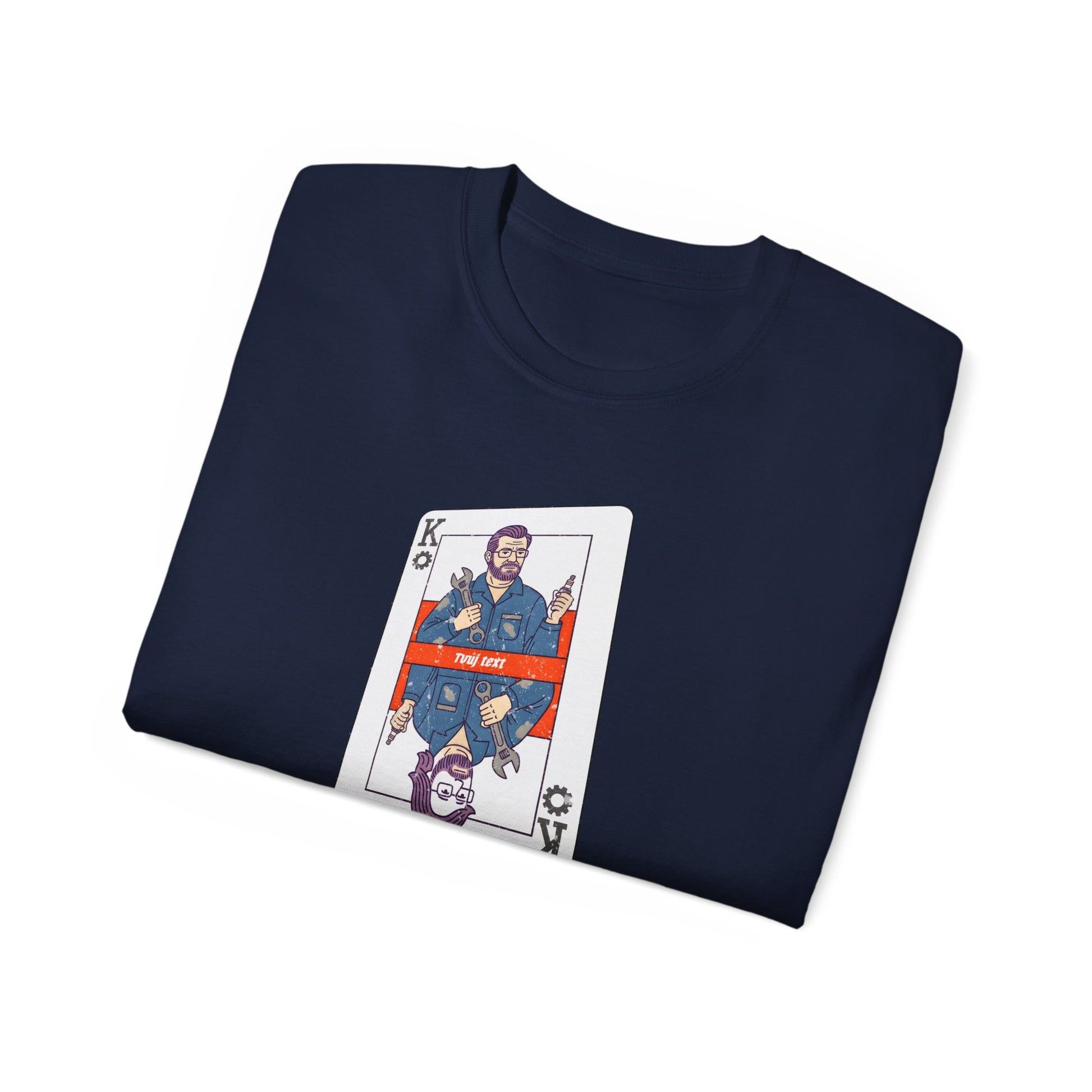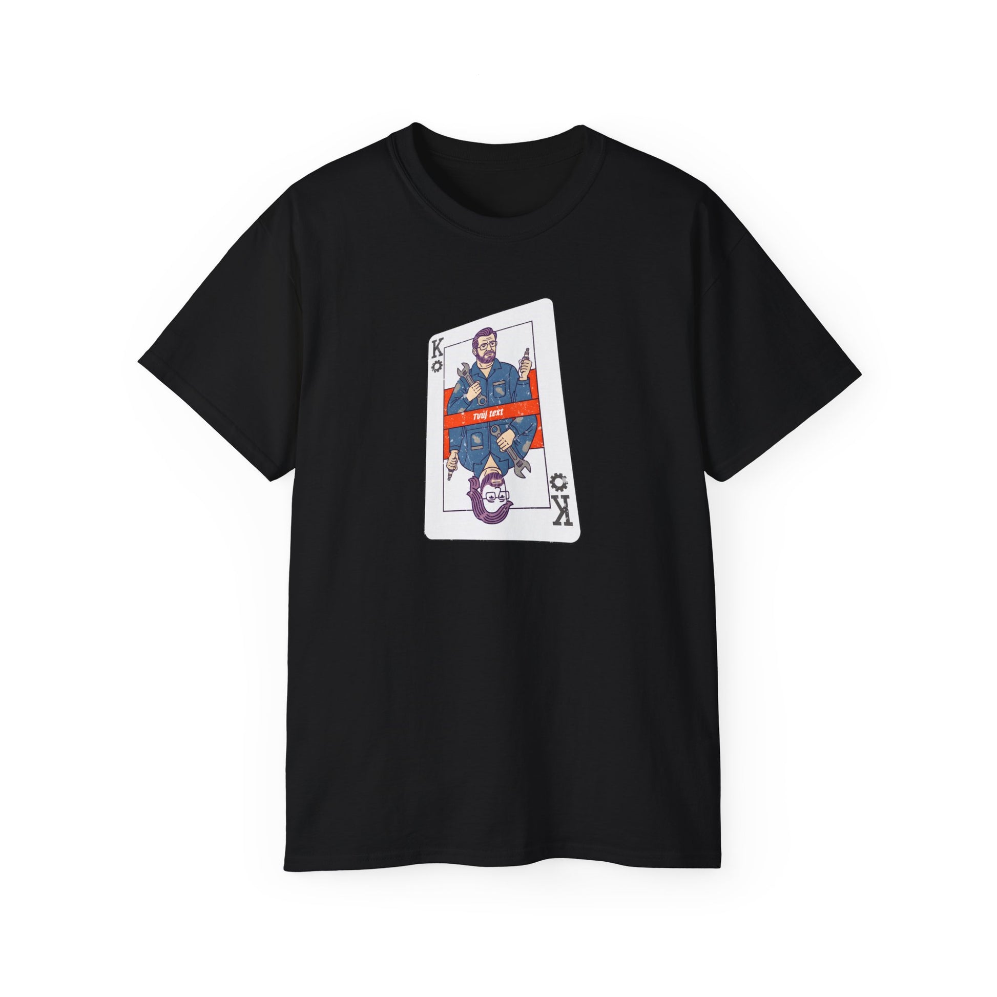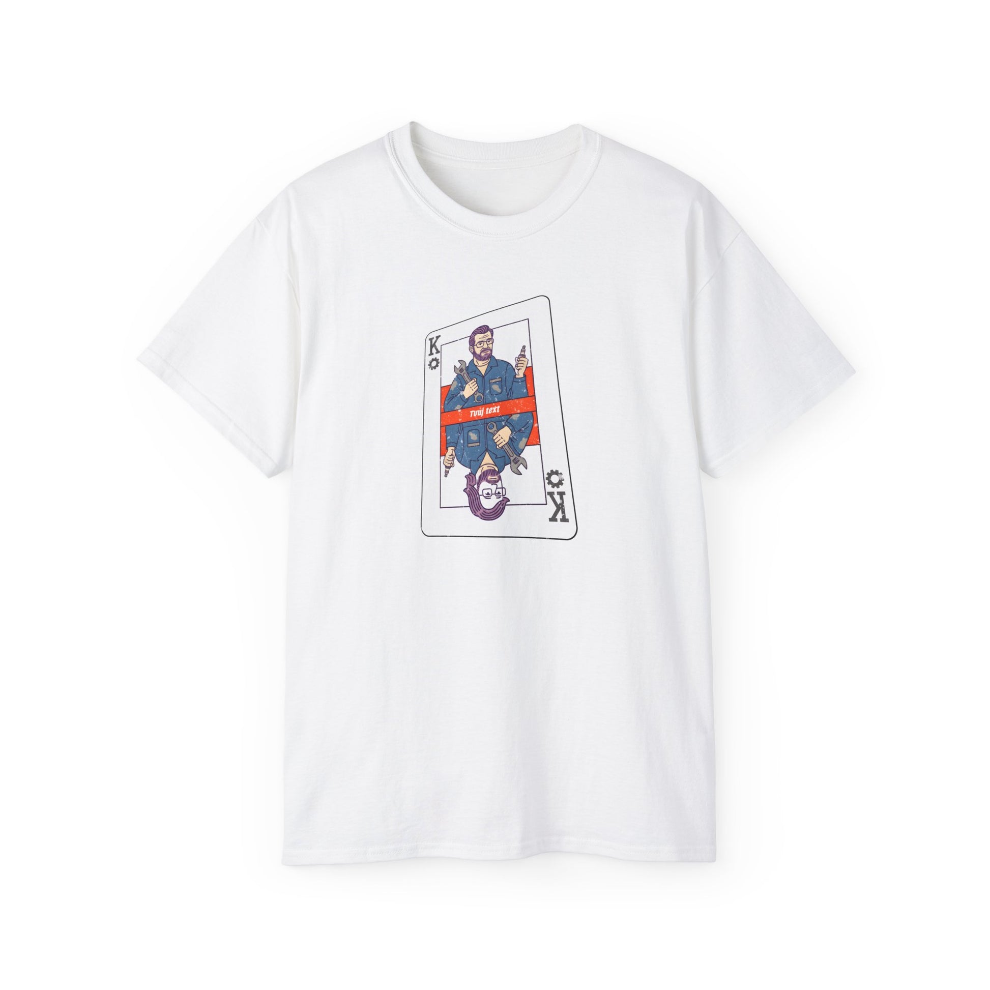 Tohle tričko je přesně pro tebe, kámo. Máš dost odvahy na to, abys čelil všem těm nezdolaným problémům pod kapotou? No jasně! Jsi frajer s rukama od oleje, co vyřeší každý problém s elegancí královského pokerového esa, jenže s výrazem, že víš, jak na to. Tak si užij, jak hraješ na šéfa, aniž bys zvedl královskou korunu z dílenského pultu!
