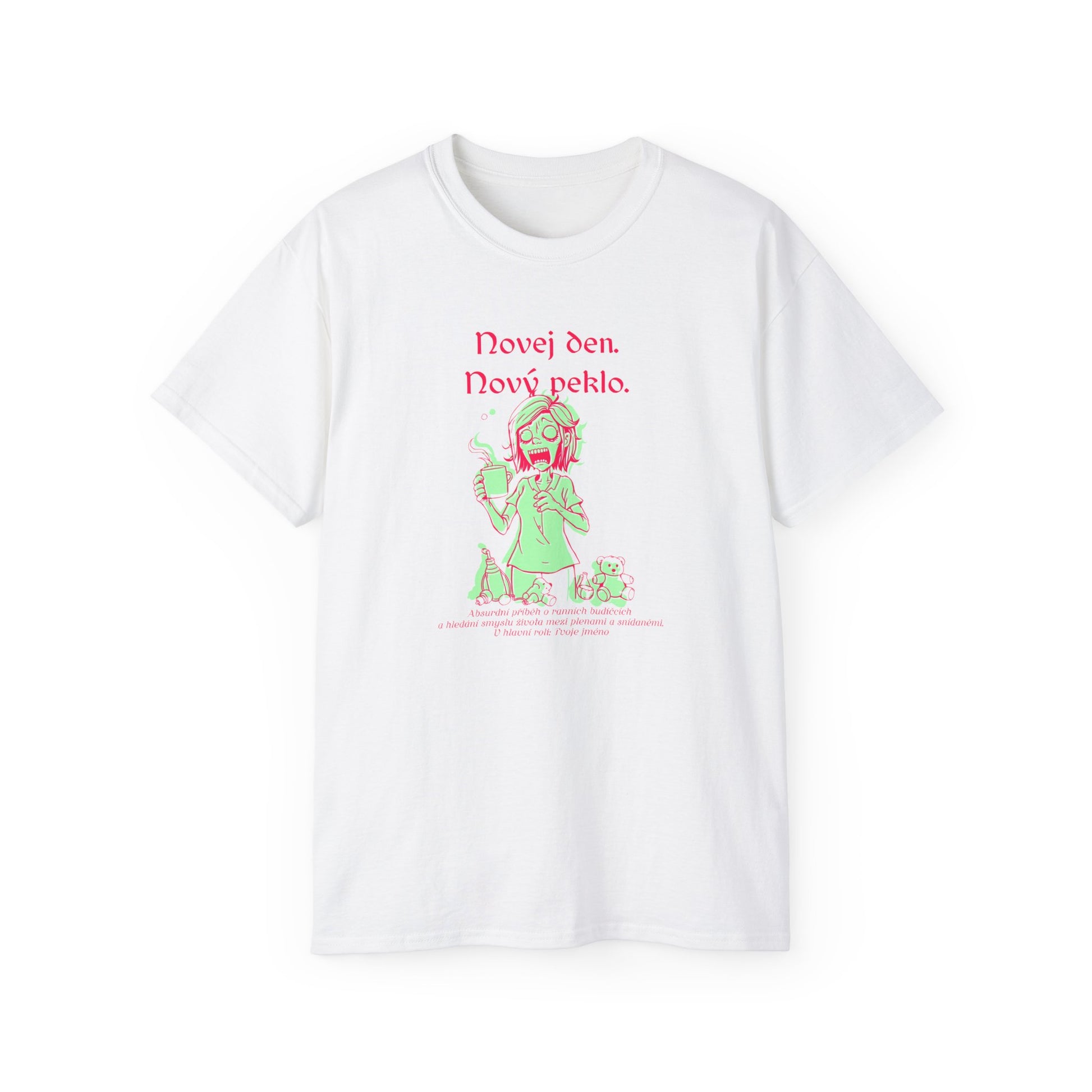 Užijte si černý humor všedního dne s naším tričkem, které rezonuje s existenciálním hledáním smyslu v chaosu ranního vstávání. Vyjádřete sarkasmus, když bojujete s plenkami a nekonečnou snídaní. Přidejte svoje jméno nebo jméno obdarované chůvy a udělejte z každodenního blázince osobní, zábavný příběh. Ideální dárek pro každou chůvu, která si umí užít absurdní kouzlo těchto momentů. Toto tričko je perfektní dárek pro chůvu, která hledá jedinečné a zábavné oblečení, které vystihuje její každodenní život.