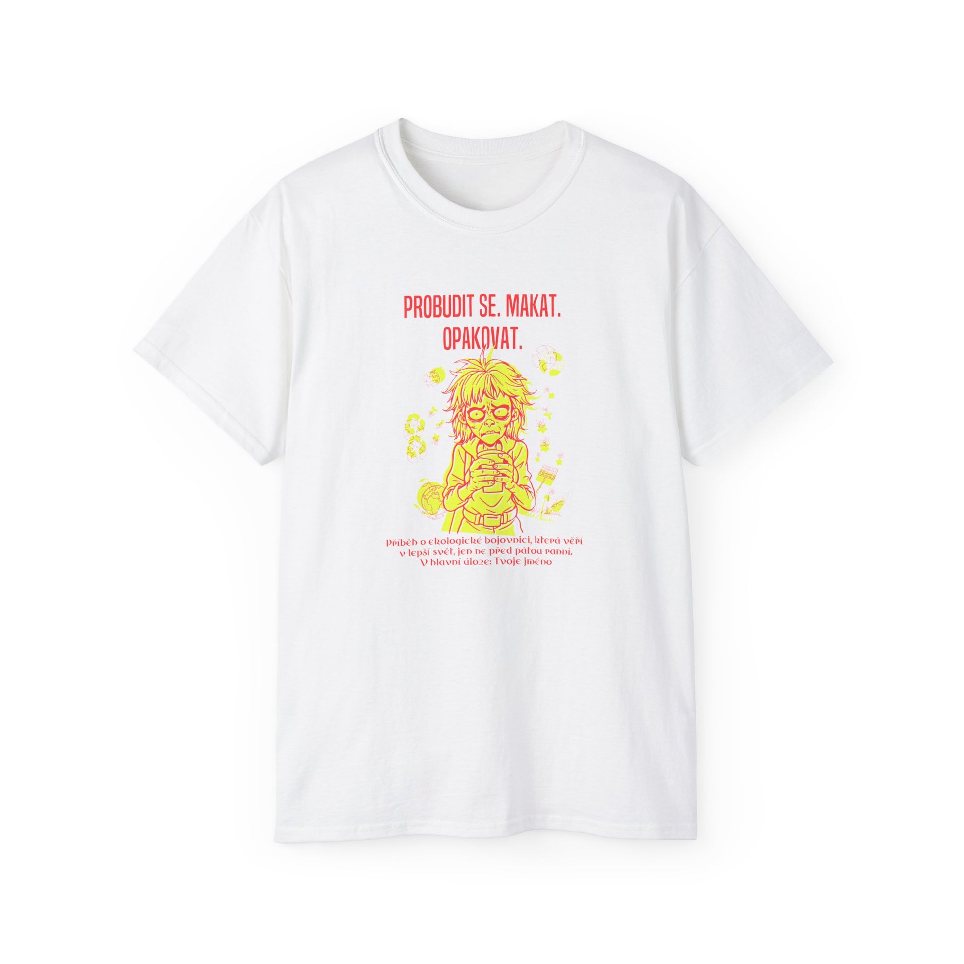 Pro všechny ekologické hrdinky, které věří, že svět může být lepší, ale ne vždy se jim to daří před pátou ranní. Toto tričko s černým humorem vystihuje ranní boj, kdy se z postele stává válečná zóna a práce nekonečným cyklem. Personalizujte si tričko svým jménem a dejte najevo, že existenciální krize se nevyhýbají ani spasitelkám planety. Ideální dárek pro ty, kdo umí spojit sarkasmus s bojem za lepší zítřek. Toto tričko je perfektní jako dárek pro environmentální poradkyně, které ocení unikátní kombinaci humoru a ekologické povědomí.