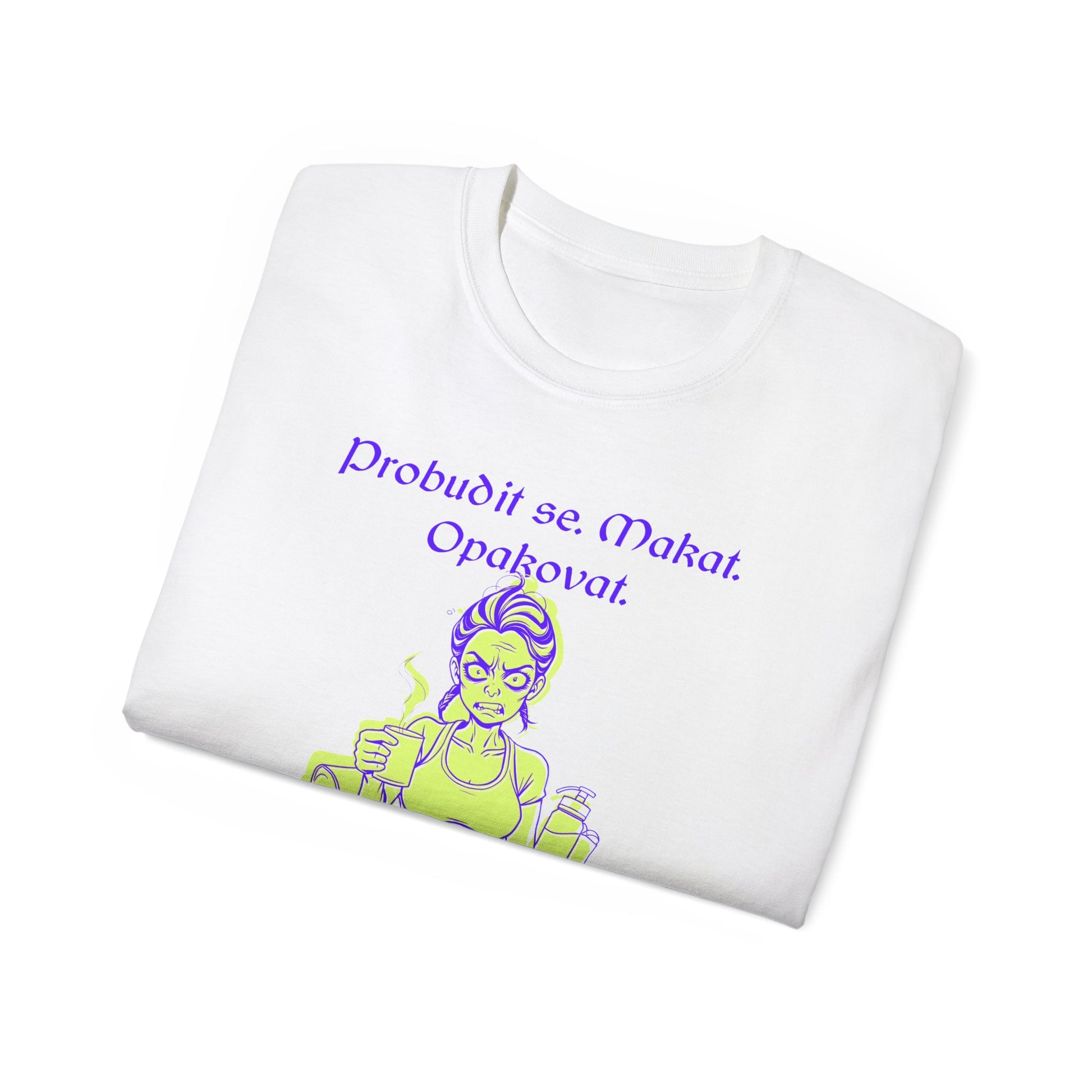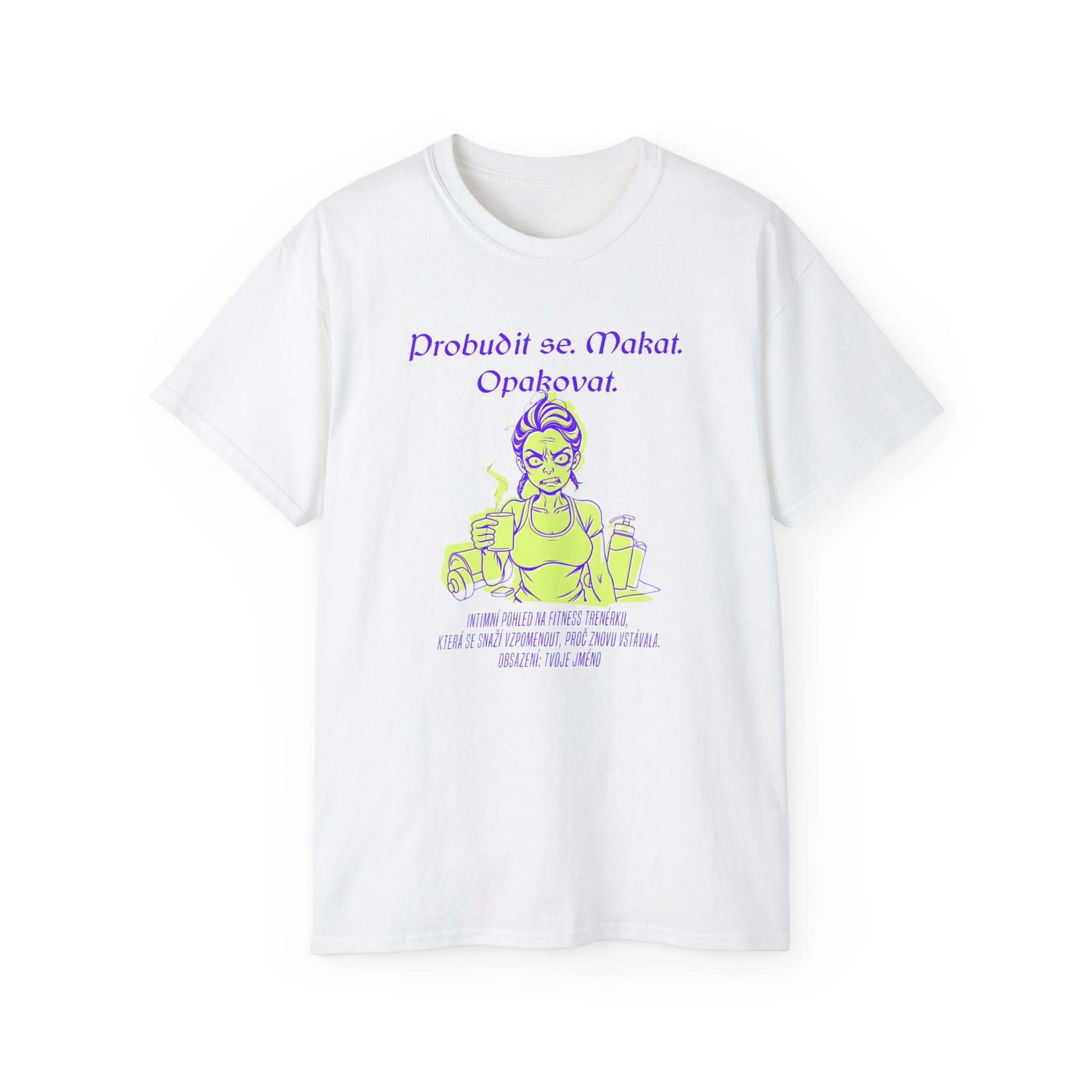 Pro všechny fitness trenérky, které ve 4 ráno rozpoznávají absurditu svého poslání. "Probudím se. Makám." Otázka „proč vůbec?“ je přímo na tričku, hned pod vaším jménem, pokud budete chtít. Se svým sarkastickým podtextem a kousavou upřímností je to ideální dárek pro tu trenérku s černým smyslem pro humor. Připomeňte jim, že nejsou samy v ranním pekle života, a to vše s humorem a šarmem. Ať už hledáte originální tričko pro fitness trenérku, nebo dárek pro trenérku, tento kousek určitě zaujme.