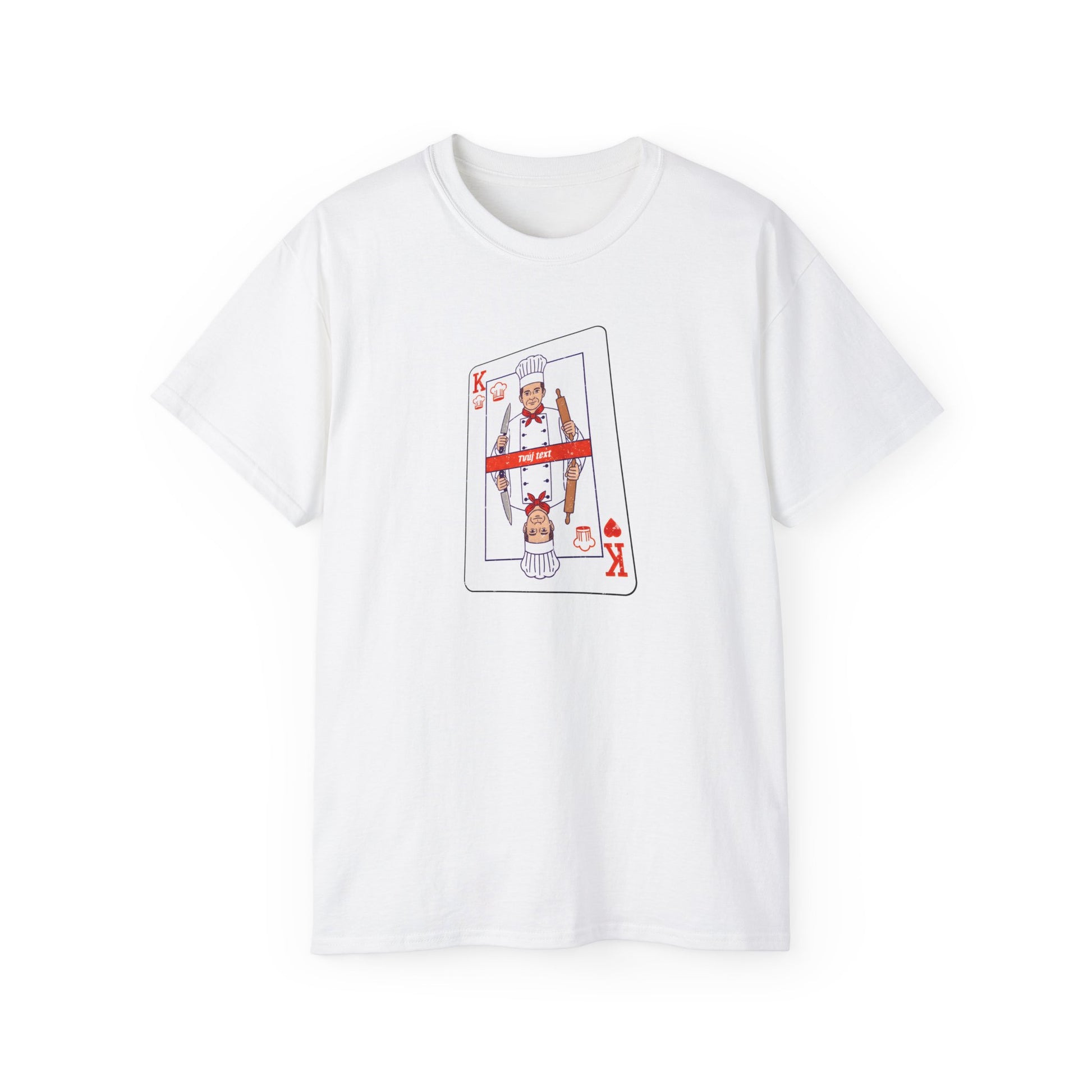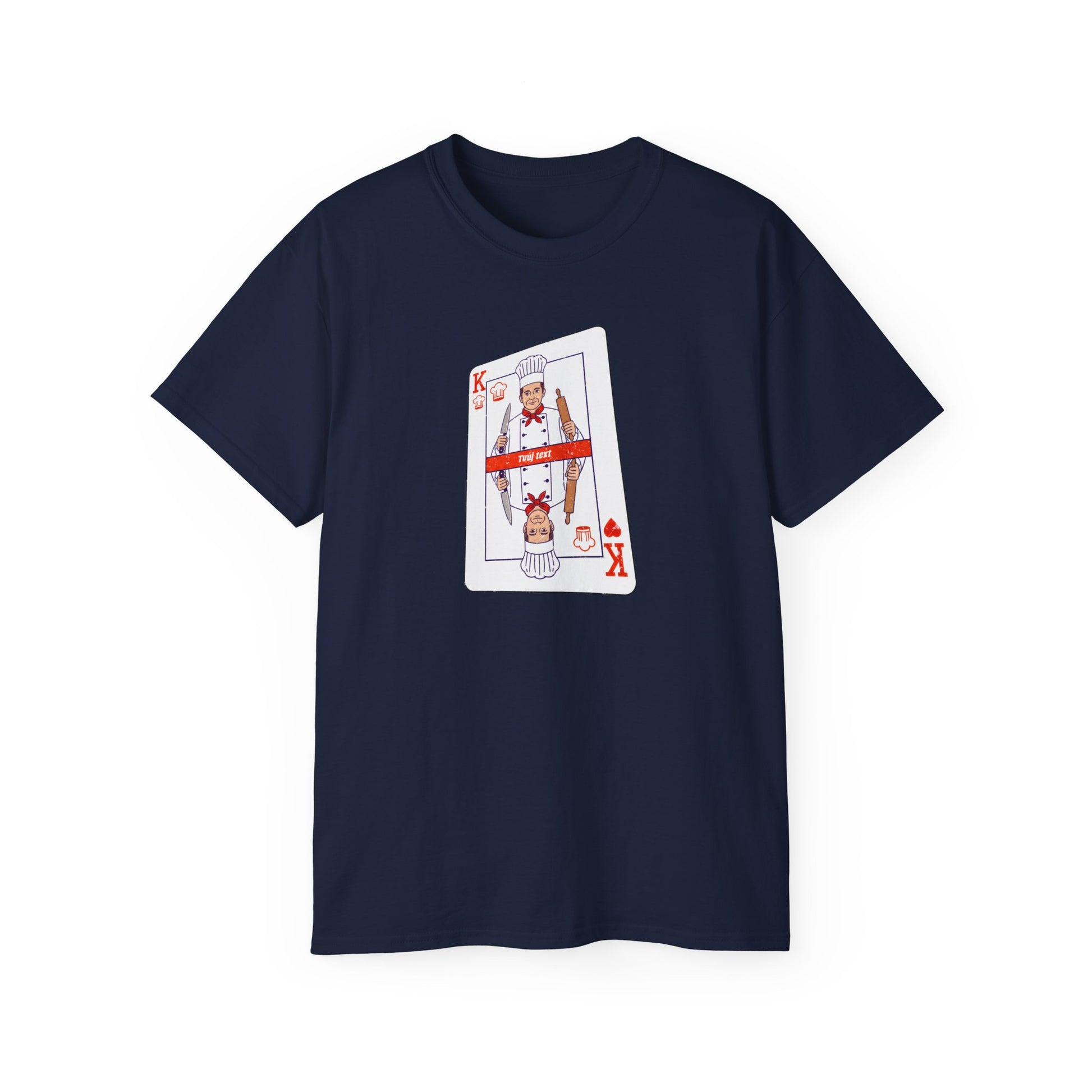 Hele kámo, tady máš tričko, které promění vaření v královskou hru života. Jsi kuchař, a na tomhle tričku jsi král pokeru s nožem ostrým jako tvoje grimasa. Je na čase ukázat, že kuchyně má svého bosse a ty držíš všechny trumfy. Oblékni ho a nechej okolí hádat, kdy rozdáš další kolo šéfovského pokeru s válečkem místo žezla. Ideální pro každého, kdo rád míchá rebélii s kuchyňským kořením a přejícnosti se směje do očí.