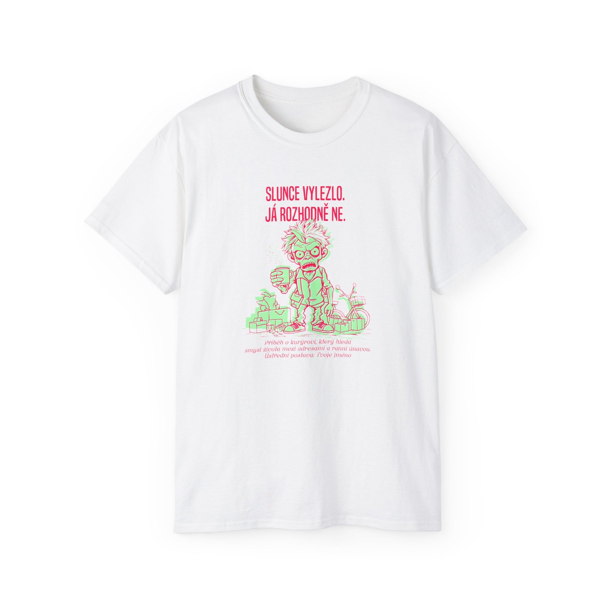 Zažijte atmosféru, kdy ranní jízda je filozofickou cestou plnou sarkastických zvratů. Tento design je stvořený pro ty, kteří hledají význam života mezi první kávou a poslední zásilkou. Přidejte své jméno pro osobní dotek a ukažte, že práce může být uměním. Vyberte toto tričko jako dokonalý dárek pro každého kurýra, který se směle potýká s absurditou každého pracovního dne. Hledáte originální tričko pro kurýra? Nabízíme kvalitní a stylový dárek pro kurýra, kterým jistě uděláte radost.