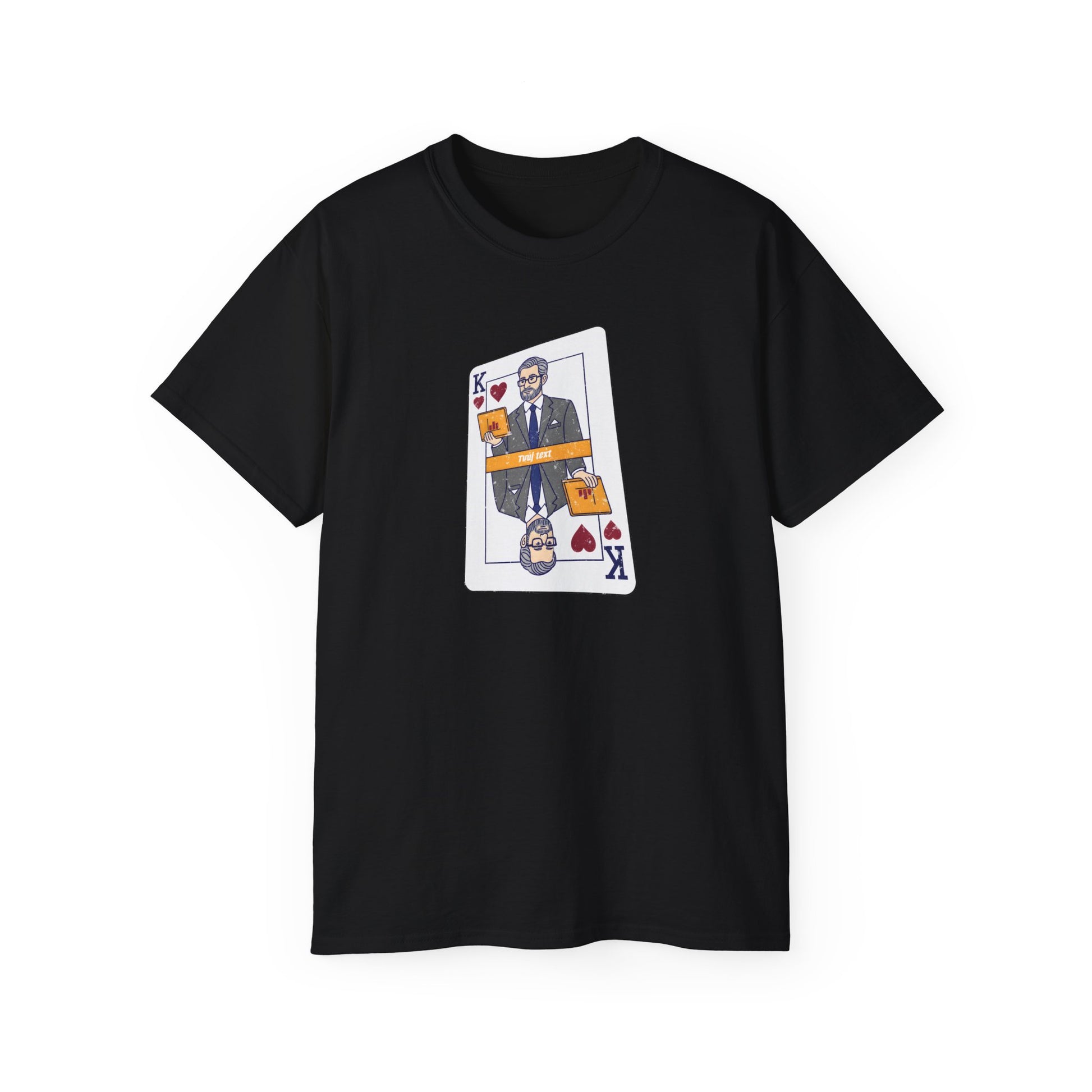 Pro dny, kdy si potřebujete trochu dopřát a ukázat všem, že pracujete tvrdě, ale hrajete ještě tvrději. Majestátně stylizovaný král na tričku kombinuje klasickou karetní symboliku s dávkou sebejistoty, která vám může otevřít dveře do ředitelské kanceláře. Být králem ve světě plném šašků je něco, co každý z nás potřebuje. Protože když už něco dělat, tak naplno, ať už to znamená nosit perfektní oblek nebo prostě vzít tričko a jít na kávu.