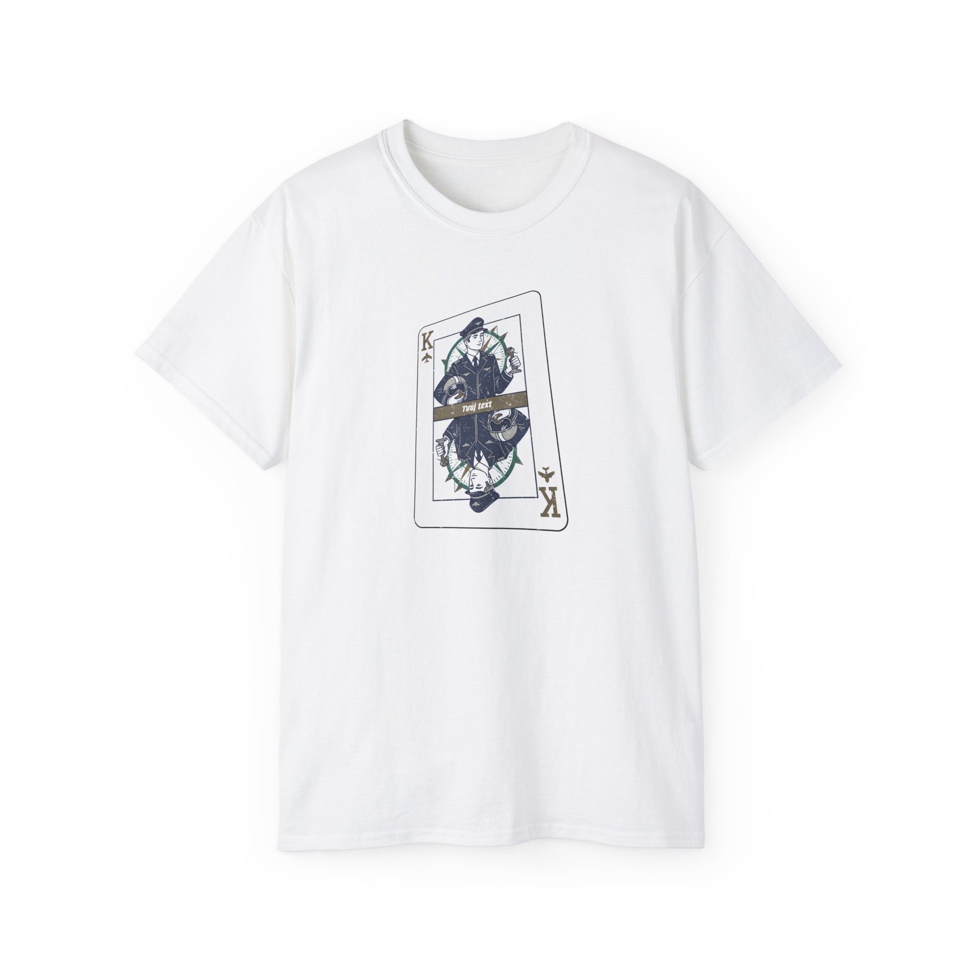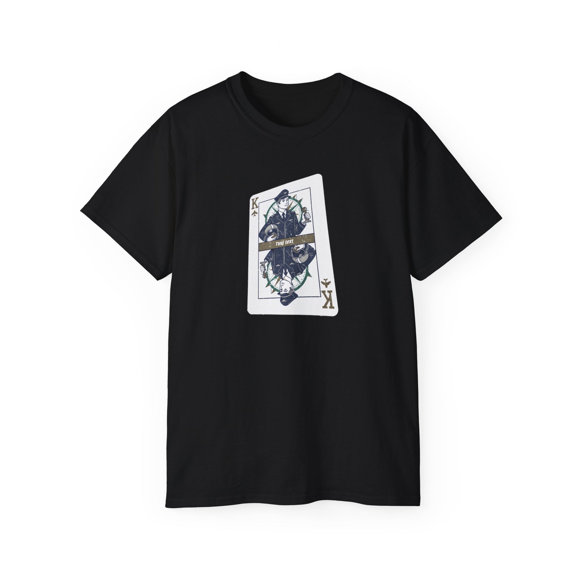 Chceš se cítit jako opravdový mistr vzduchu? Tričko s pilotem králem na karetní kartě je pro tebe! Staň se vládcem nebes s lehkostí a odvahou pokerového hráče. Můžeš ho mít na sobě s elegancí nebo volně jako pravý král oblohy, přičemž každý pohled bude trochu závistivější. Tohle není jen kus oděvu, je to status.