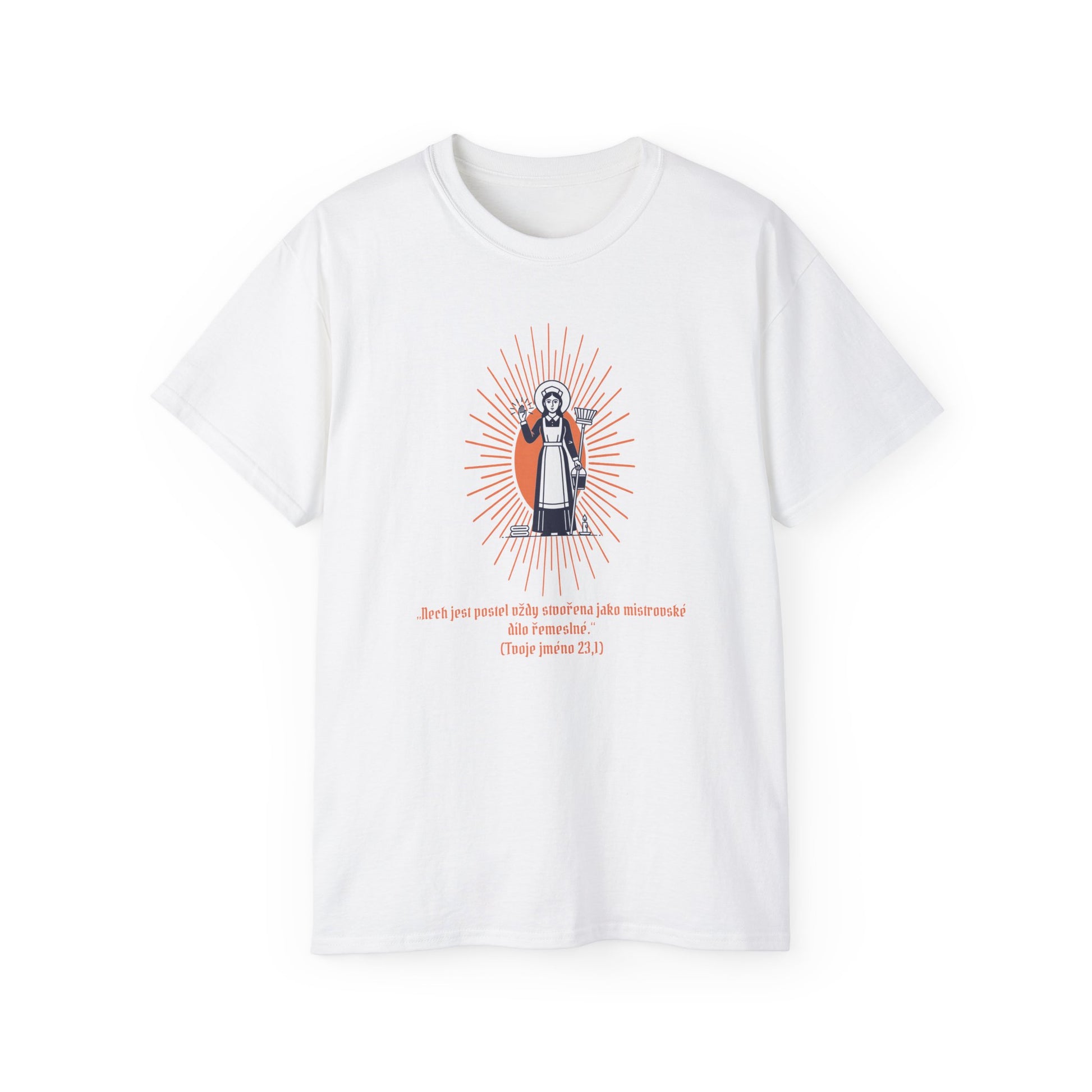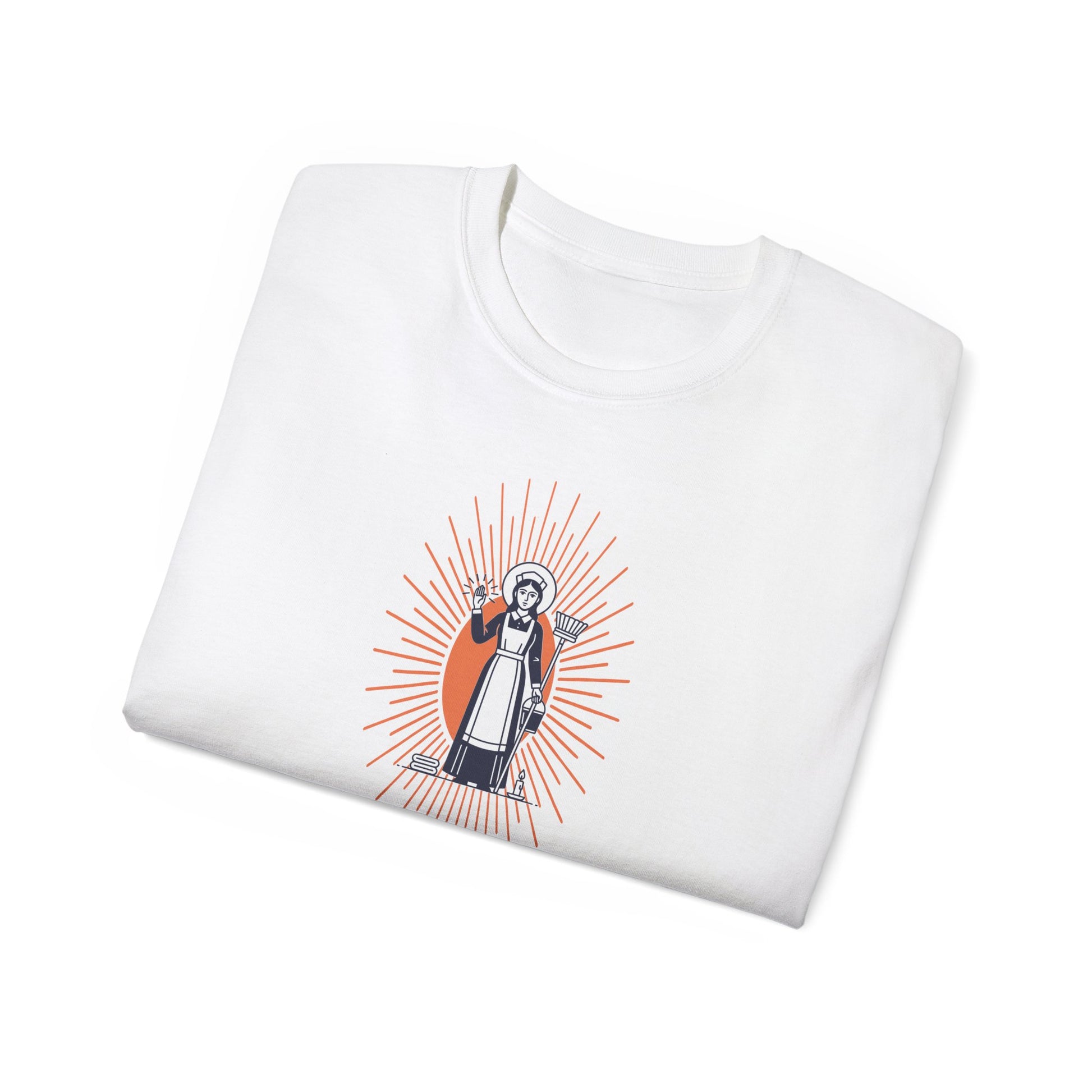 Protože všichni víme, že v životě pokojské jsou svatá pravidla a jedno z nich je poskládání postele na jedničku. Obleč si toto tričko s ikonickou posvátnou postavou a ukaž, že i život pokojské může být epický. Trocha ironie, hodně stylu. Kdo by řekl, že takové všední činnosti mohou mít něco společného se svatostí? Jednoduše holy chic!
