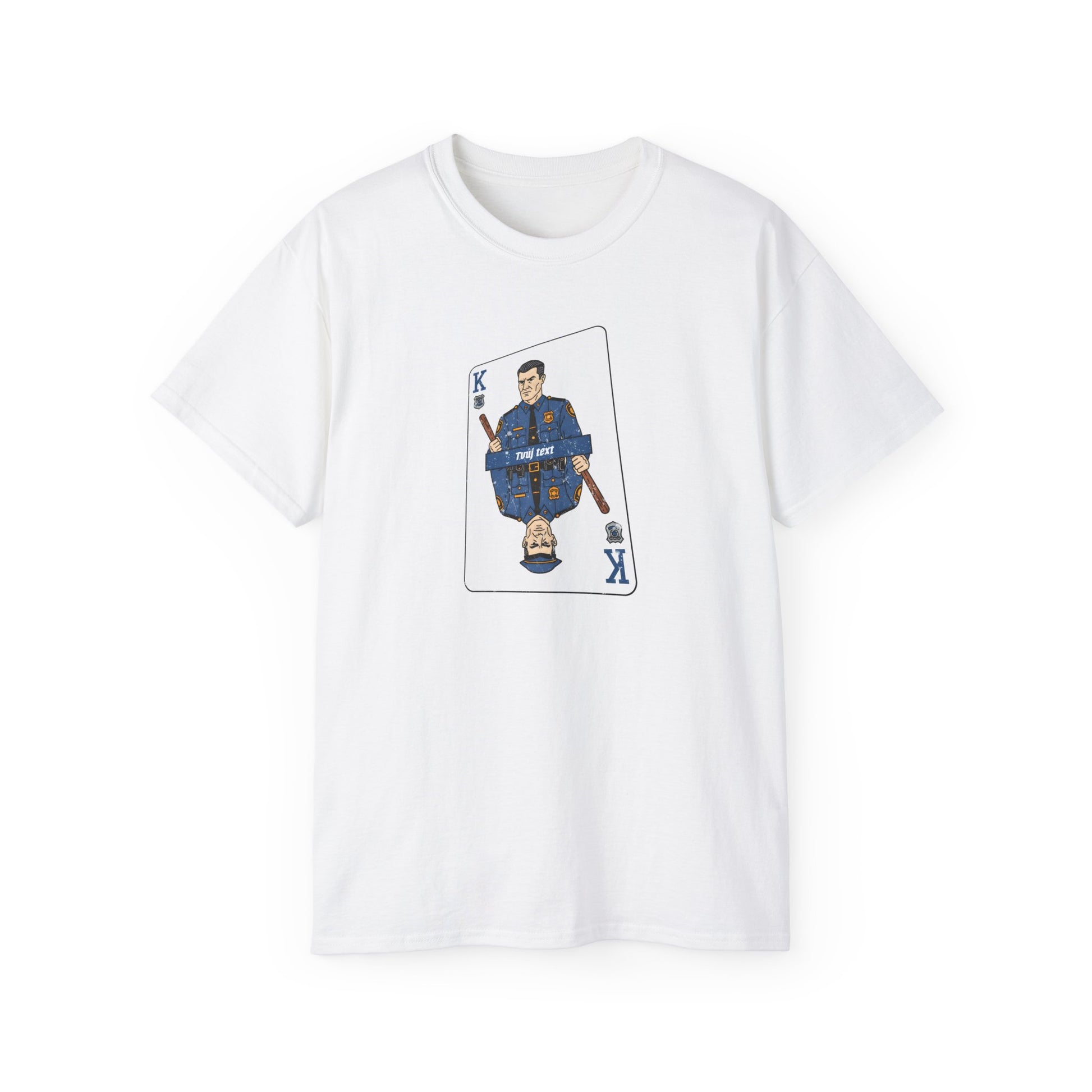 Vždycky jsi chtěl mít pocit, že jsi v kůži krále, že? S tímto tričkem to můžeš zažít – alespoň na první pohled. Stylizovaná karta krále s policistou ti dodá odvahu jako nikdy předtím a vypadáš skvěle i bez modrého majáku. Představ si ten úsměv na tváři, když zneškodníš zločin s královskou lehkostí a sarkasmem. Dejte najevo, že vzpoura a sebevědomí jsou také ve tvém repertoáru, nejen monotónní hlídání pravidel. Protože každý den nemůžeš vyhrát bitvu, ale můžeš se u toho alespoň zasmát.