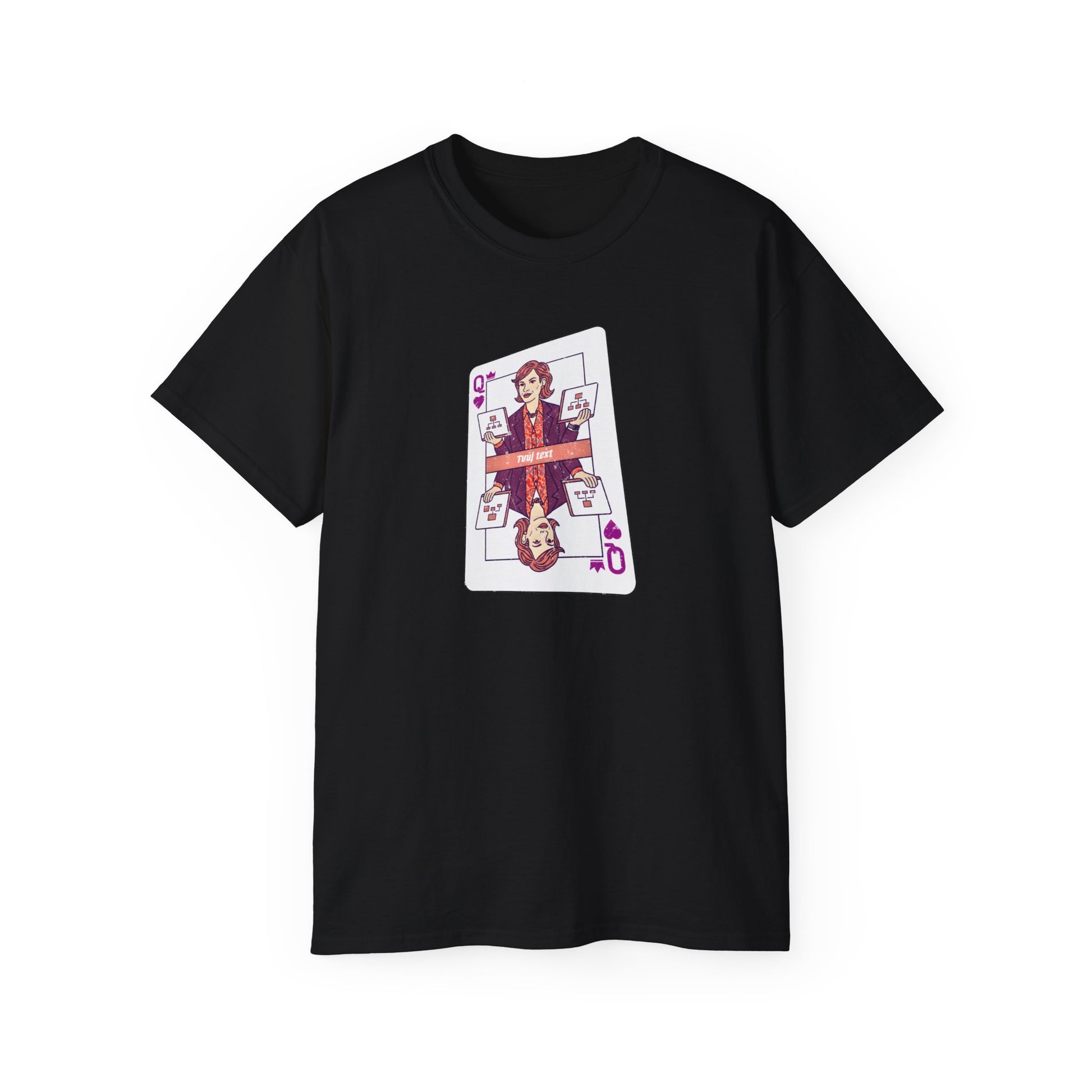 Už jsi někdy chtěla být královnou? S tímhle trikem se jí staneš, ale bez Prince Charminga. Staň se královnou mezi produktovou smetánkou! Toto tričko ti propůjčí takové sebevědomí, že se i firemní vedení bude tvářit, že o tobě šušká. Proč skládat karty, když můžeš hrát s královnou v kapse? Dej všem vědět, že hraješ vlastní hru!