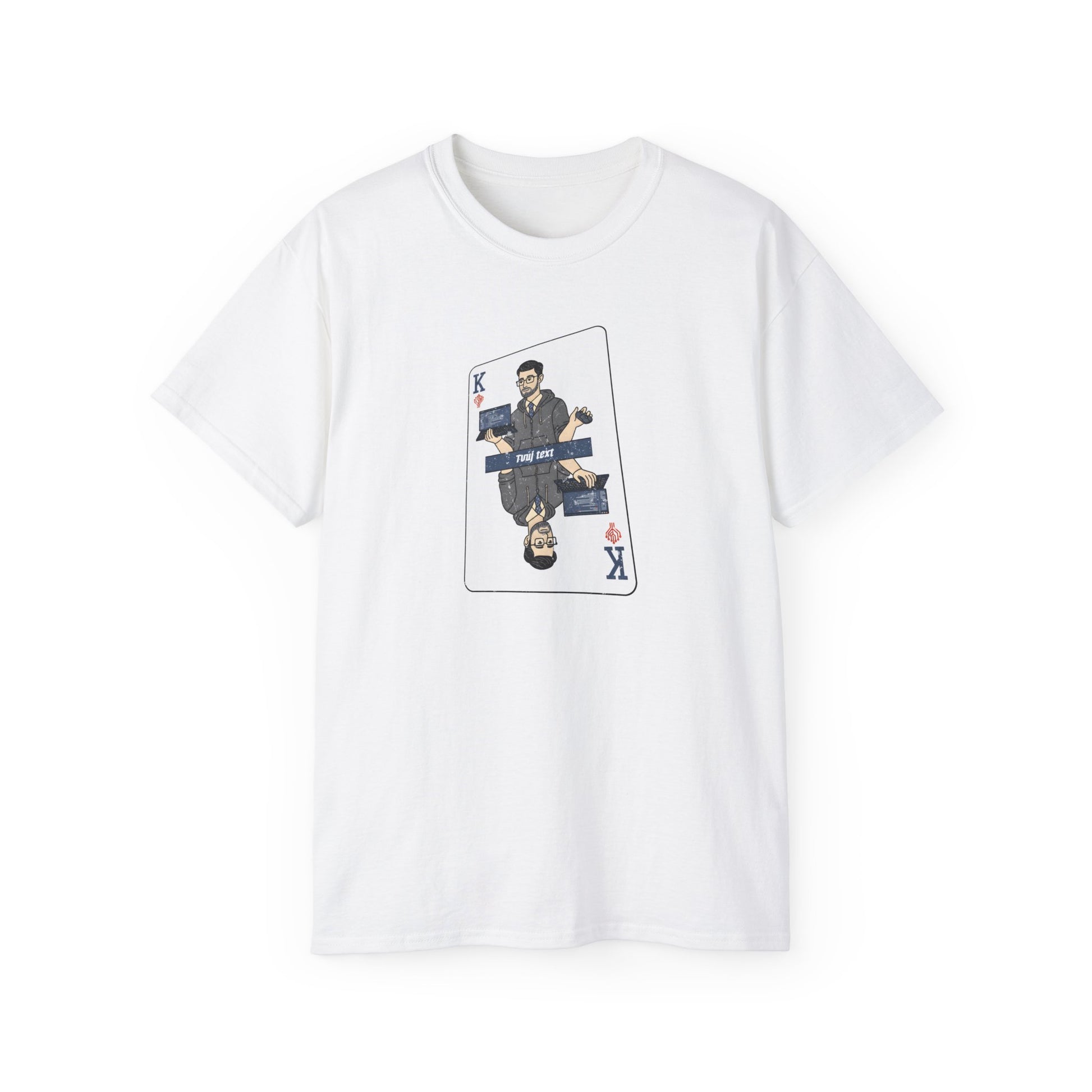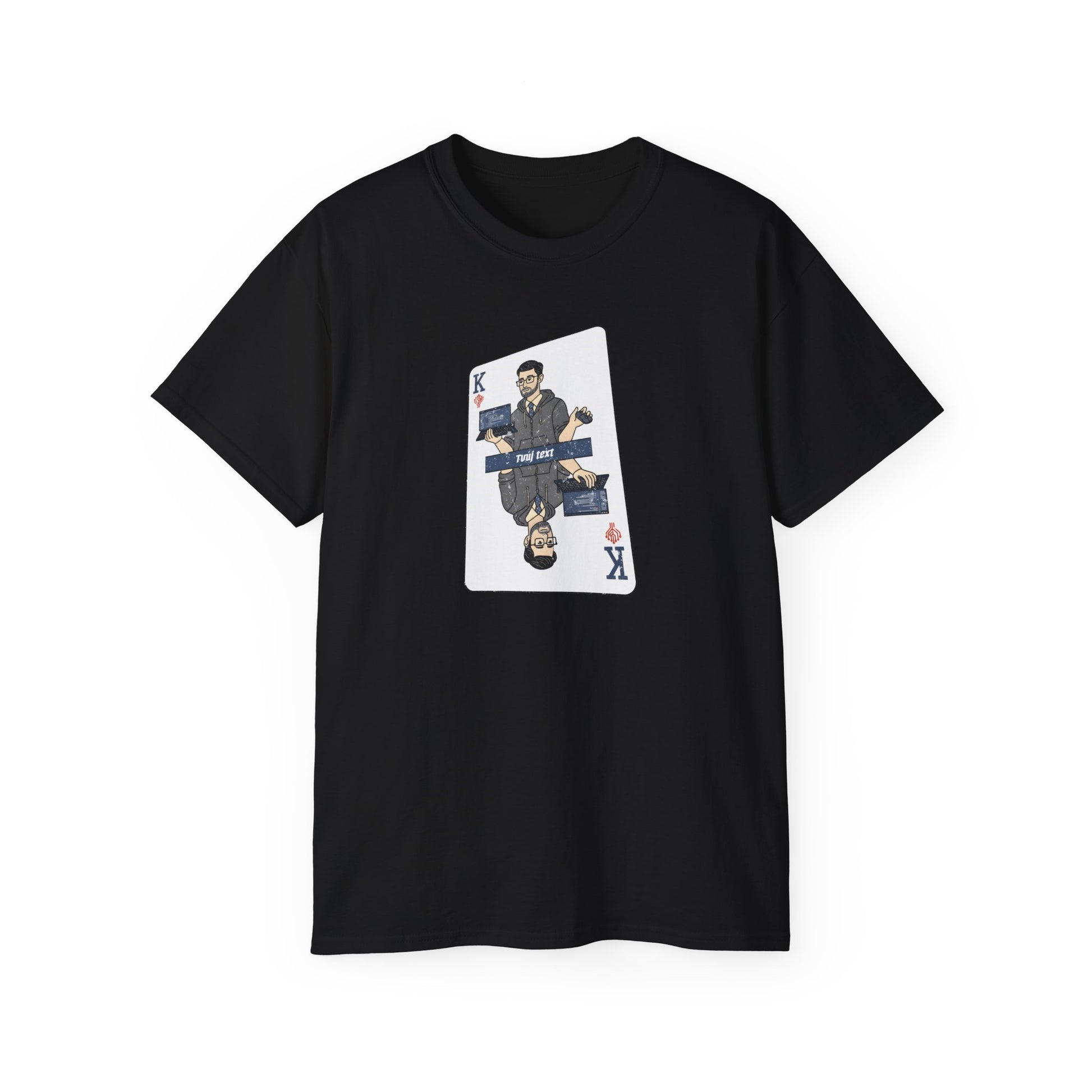 Kámo, programátor a král v jednom balení! To není sci-fi, to je tričko. Na hrudi pokerová karta s králem, který má styl jako hacker a sebevědomí jako Iron Man po osmi pivech. Zapomeň na nudný dress code, tohle tričko ti dodá pocit, že sedíš u stolu v Las Vegas. Navíc s poker face můžeš software debugovat jako nikdy předtím. Ukaž kolegům, kdo je tu opravdový šéf kodérů!