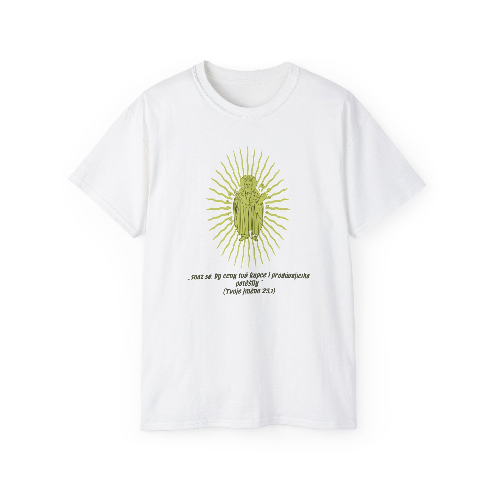 Toto tričko je ideální pro všechny realitní guru, kteří spoléhají spíše na jednání než na zázraky. Usilujte o to, aby ceny potěšily vaše kupce i prodávající – splnění modliteb všech realitních makléřů. Je to svatý Grál zábavy v realitním byznysu. S posvátnou postavou a textem na triku to prostě musíte mít! Pokud hledáte ideální dárek pro realitního makléře, naše tričko pro makléře je tou pravou volbou.