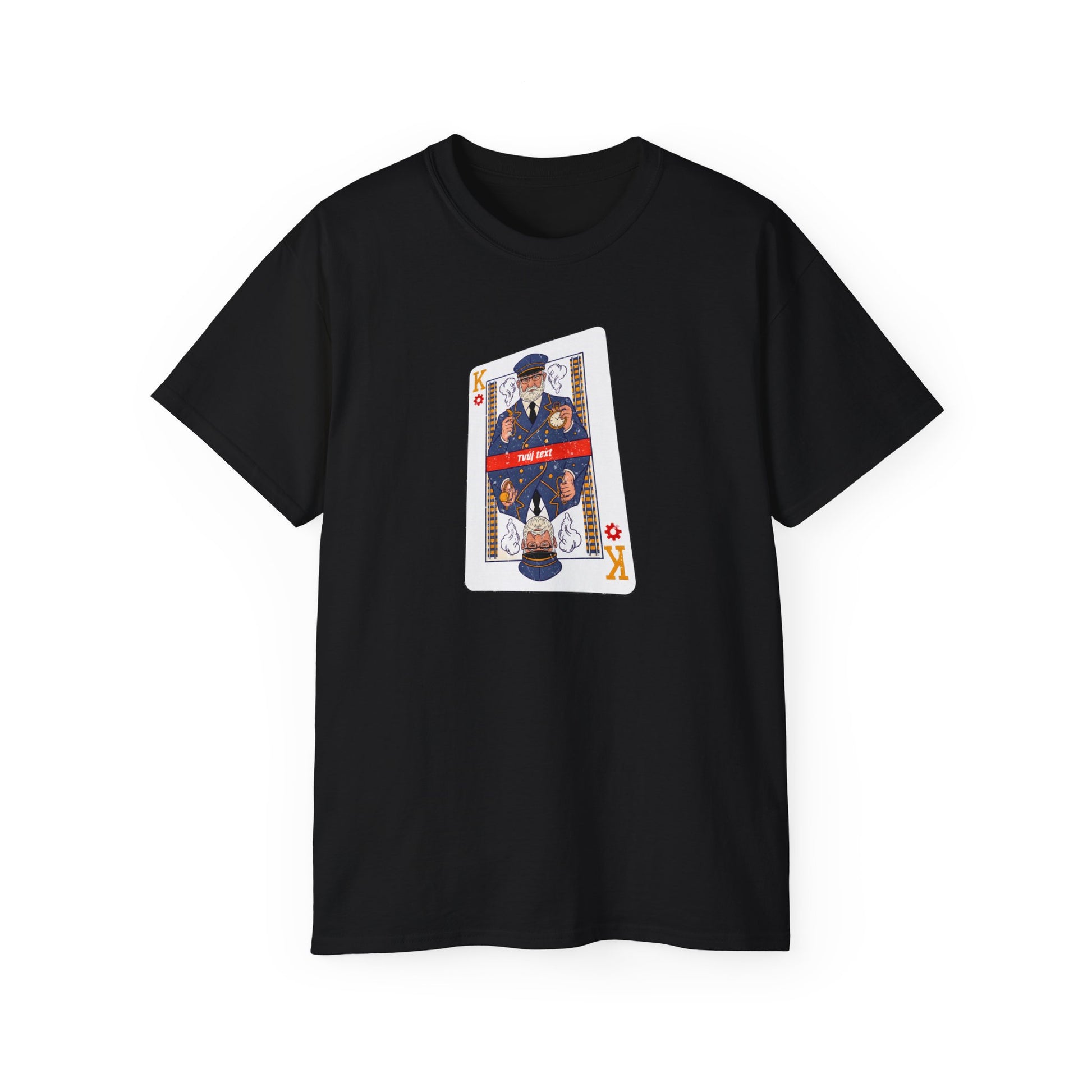 Hej kámo, věděl jsi, že strojvedoucí může být král? Na tomhle tričku to tak rozhodně vypadá. Stylizovaný král na kartě K s drsnějším výrazem než tvoje pondělní kocovina. Perfektní pro ty, co železnici berou jako životní styl a chtějí to dát světu vědět s trochou humoru. Ideální na večerní posezení s ostatními mašinfíry. Hraní pokeru vypadá najednou snáz.
