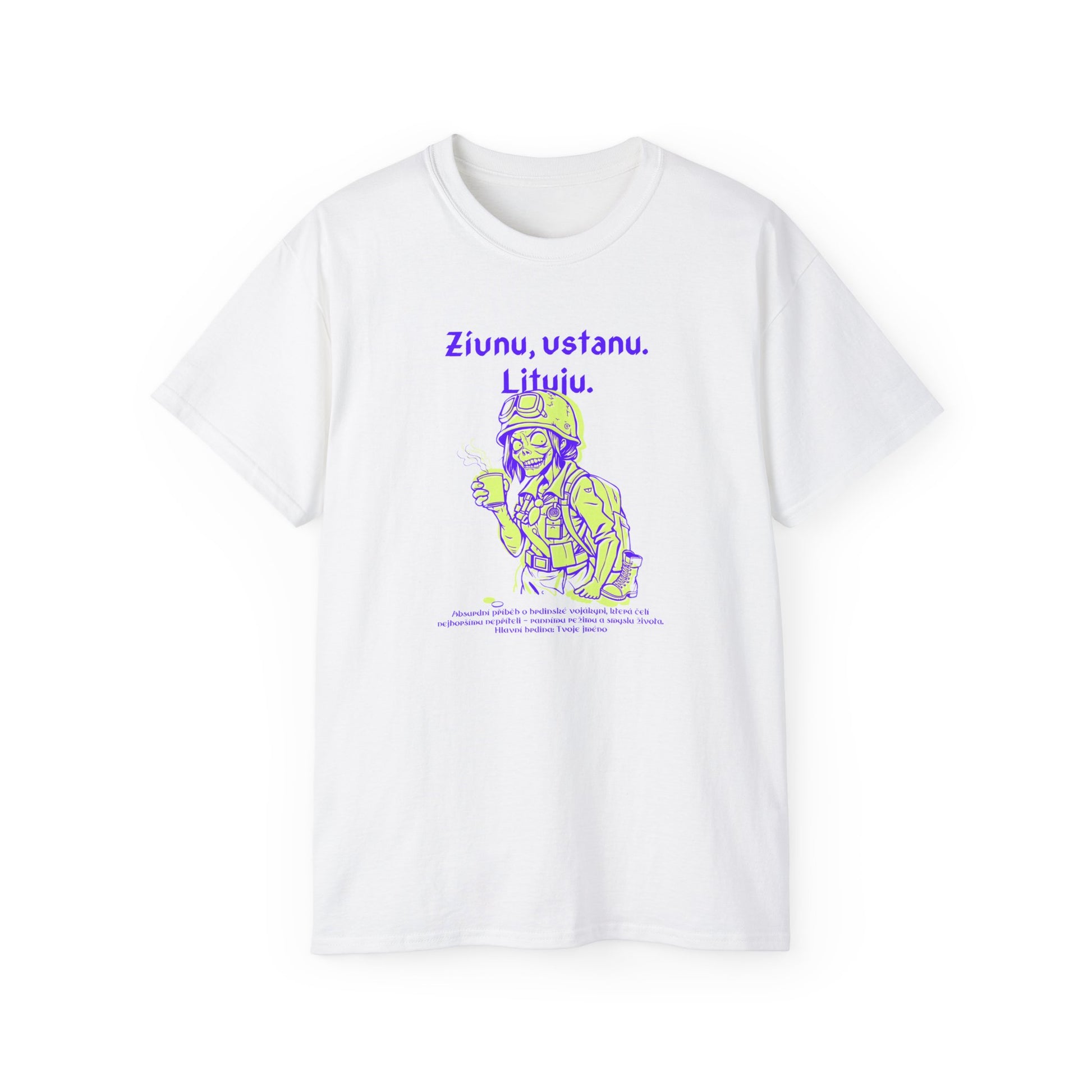 Toto tričko přináší absurdní příběh o vojákyni, která čelí svému největšímu protivníkovi - falešnému optimismu ranního režimu. S každým zívnutím a existenciální otázkou o smyslu života je tento sarkastický design skvělou volbou pro ty, kdo vědí, že boj o klidné ráno není zbytečný. Personalizujte tento kousek jménem a darujte ráno takové, jaké si zaslouží - s úsměvem a odvahou, ideální dárek pro každou vojákyni.